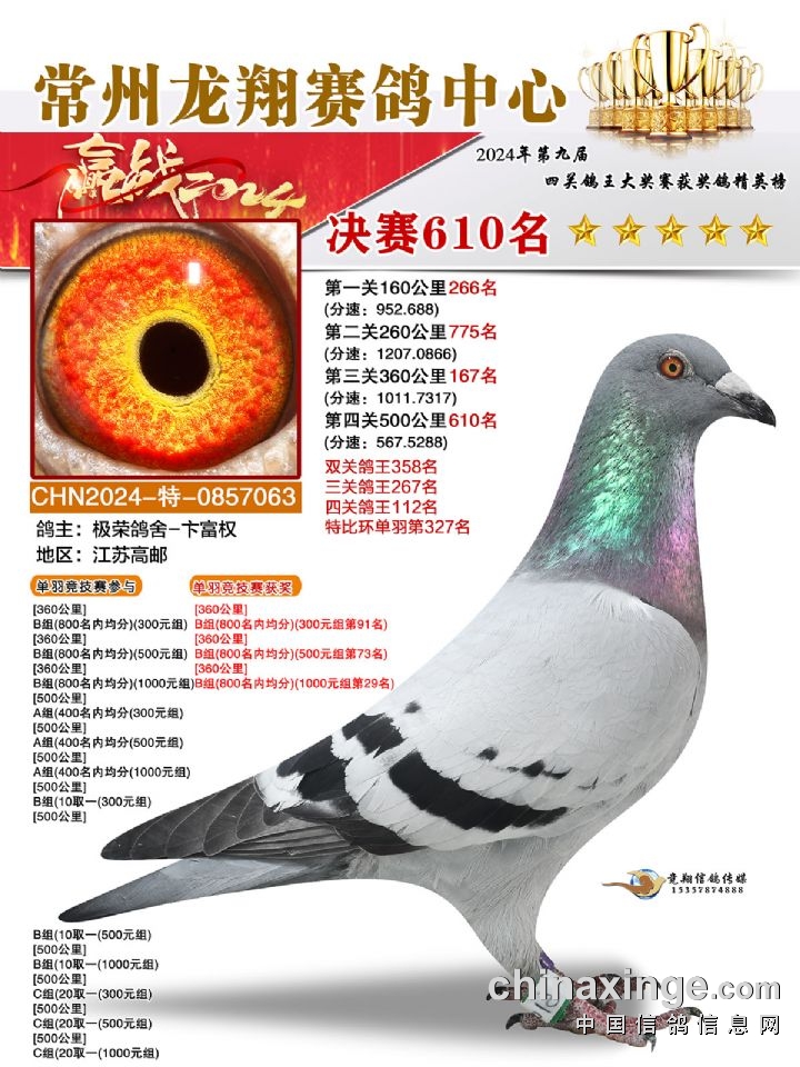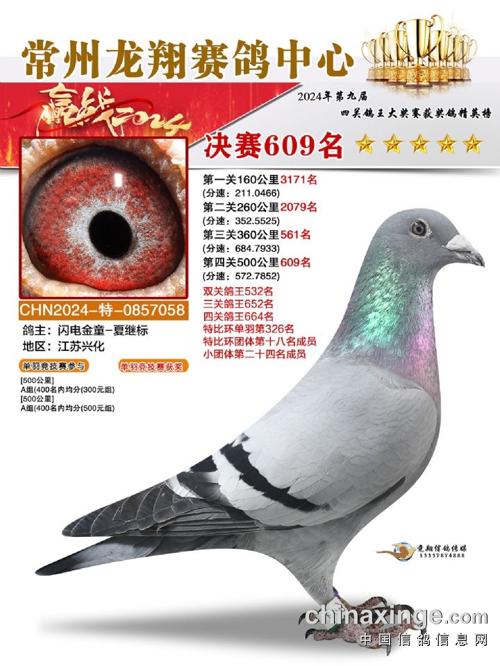 常州龙翔:2024年决赛获奖鸽靓照606-610名