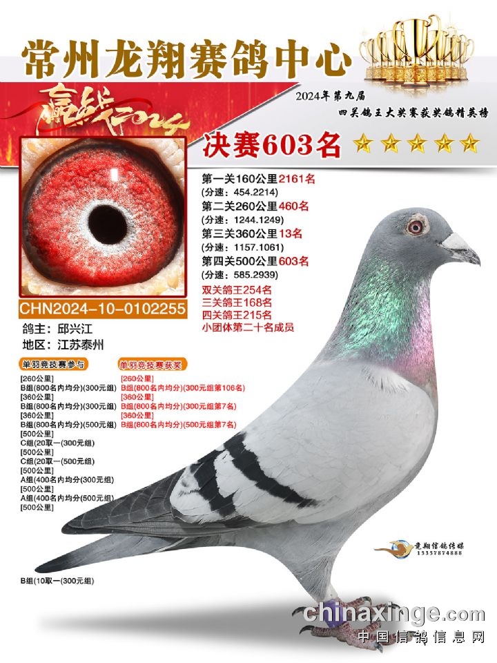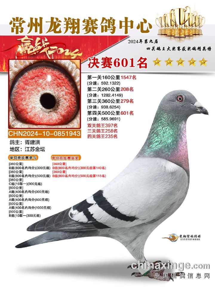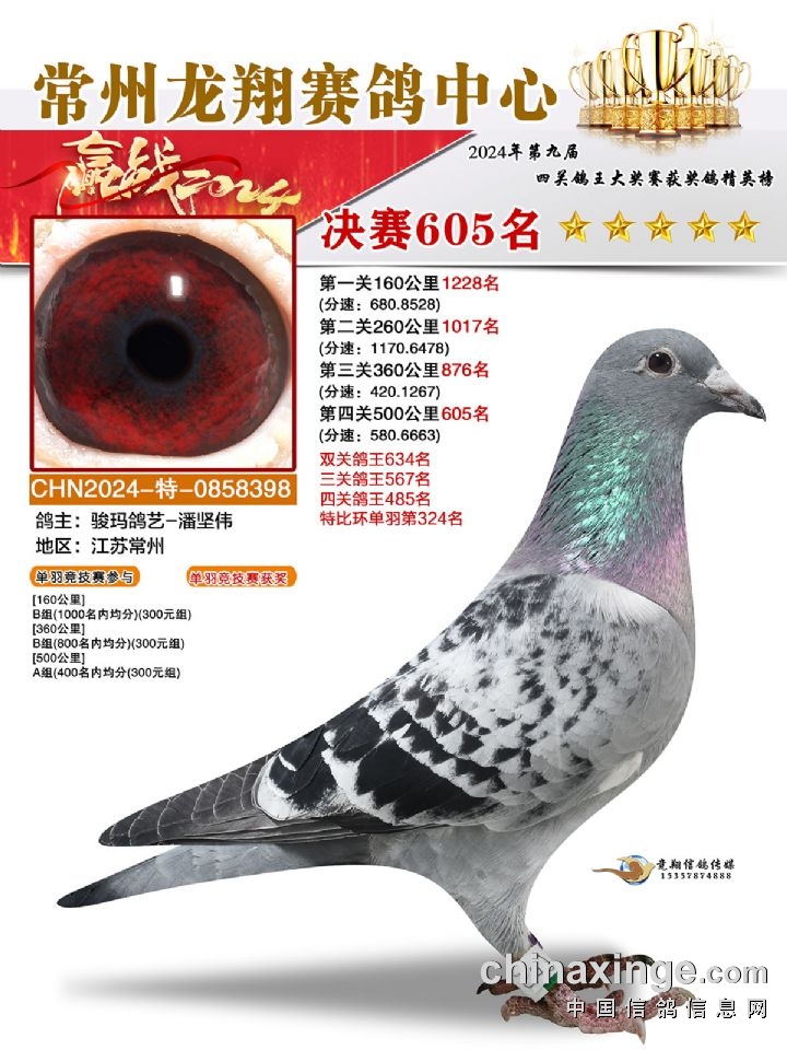 常州龙翔:2024年决赛获奖鸽靓照601-605名