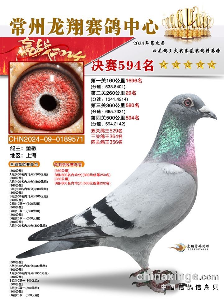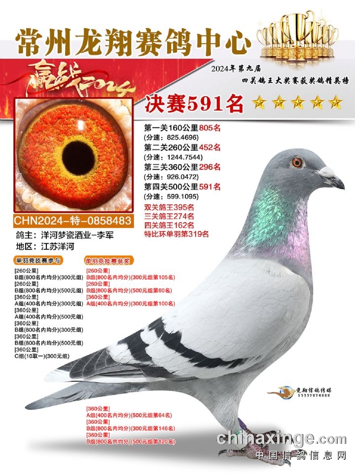 常州龙翔:2024年决赛获奖鸽靓照591-595名