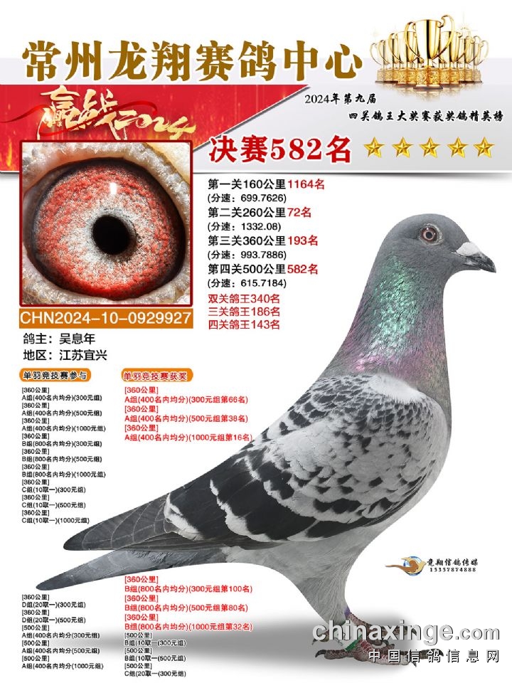常州龙翔:2024年决赛获奖鸽靓照581-585名