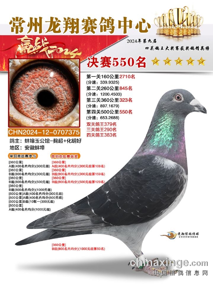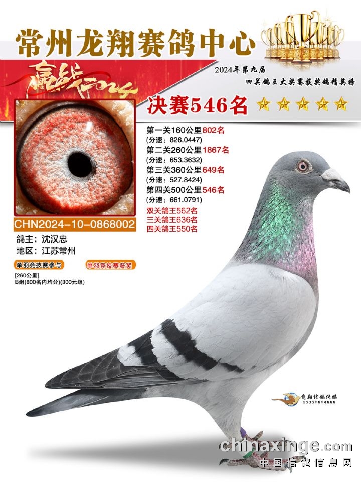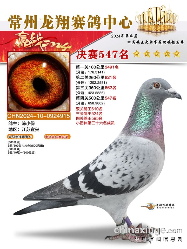 常州龙翔:2024年决赛获奖鸽靓照546-550名