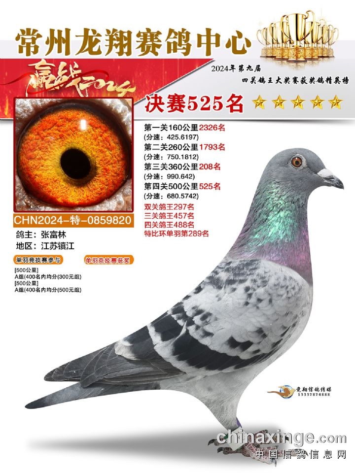 常州龙翔:2024年决赛获奖鸽靓照521-525名