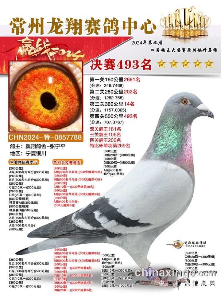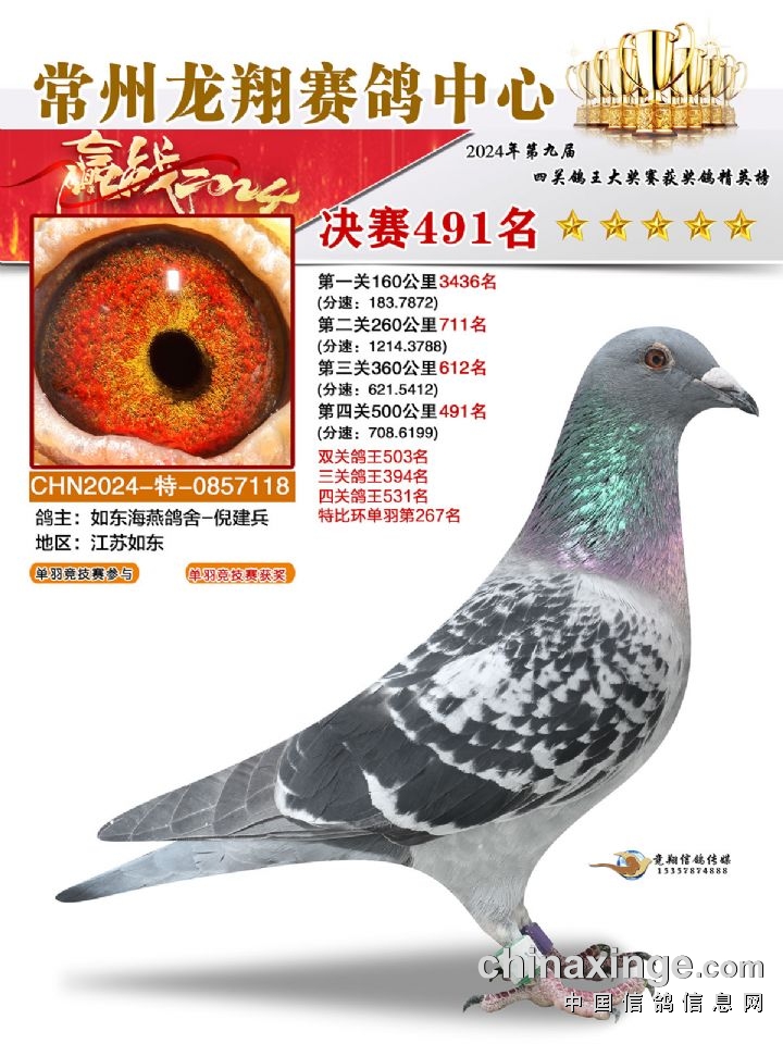 常州龙翔:2024年决赛获奖鸽靓照491-495名