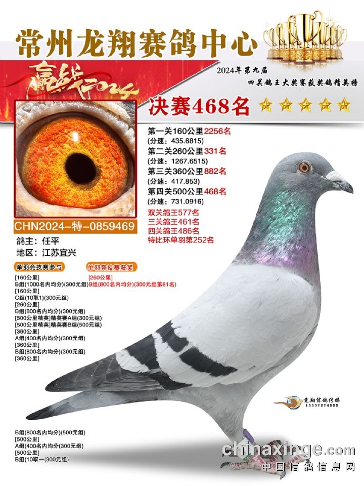 常州龙翔:2024年决赛获奖鸽靓照466-470名