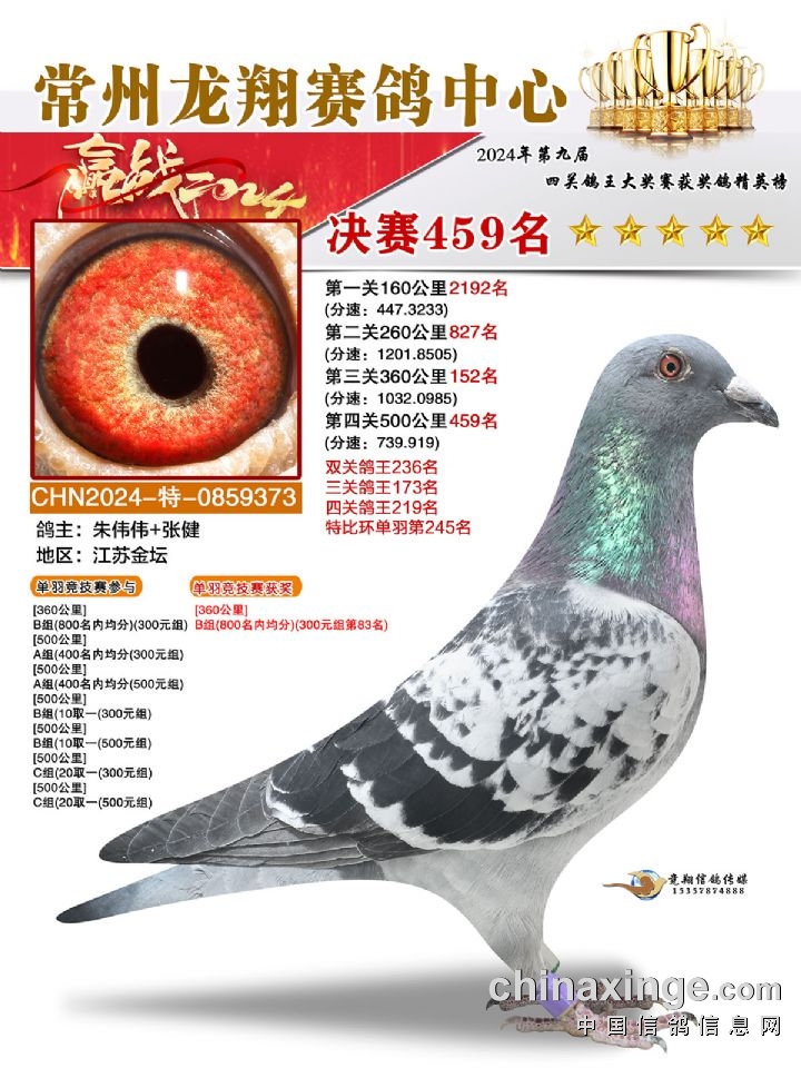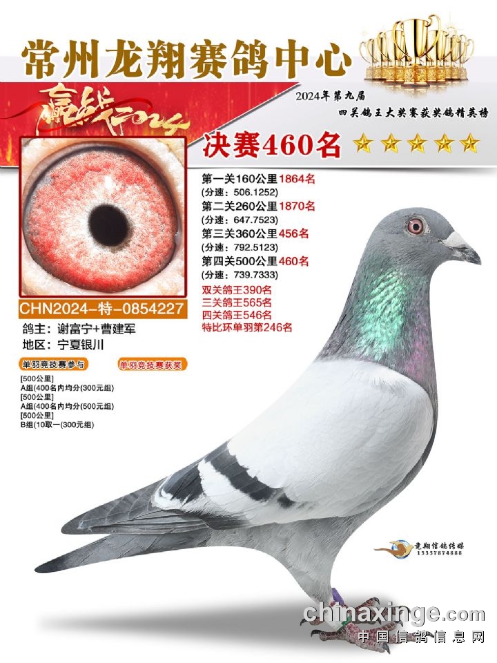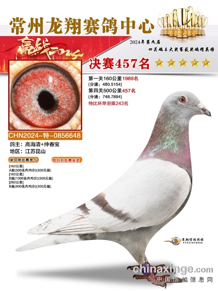 常州龙翔:2024年决赛获奖鸽靓照456-460名