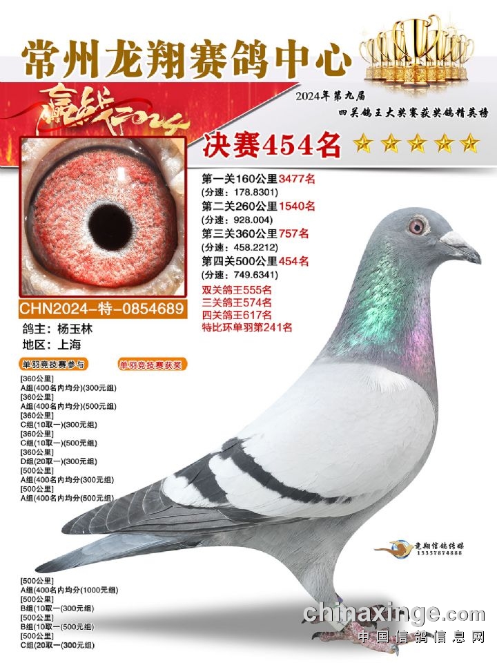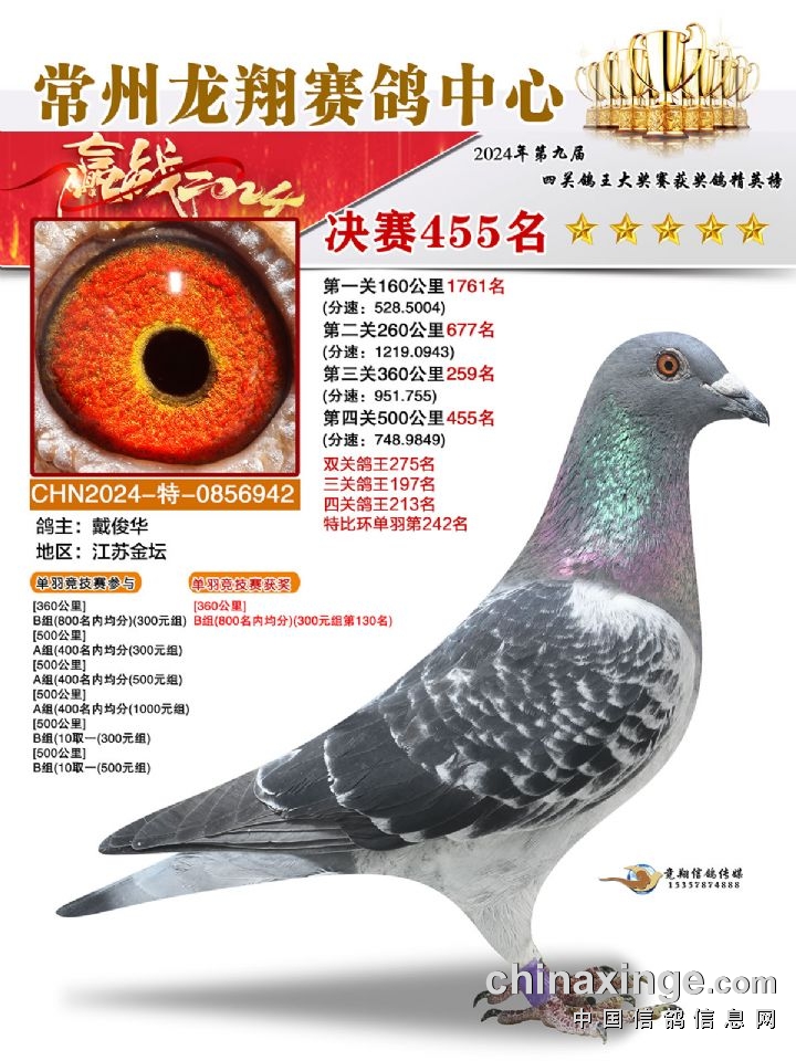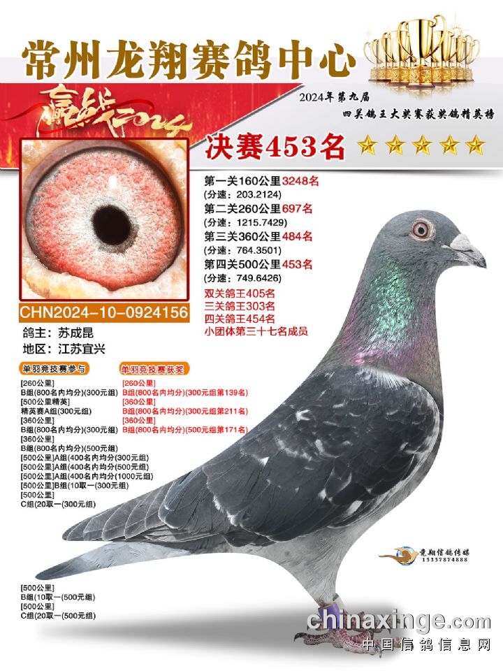 常州龙翔:2024年决赛获奖鸽靓照451-455名