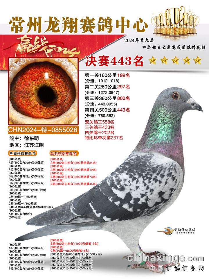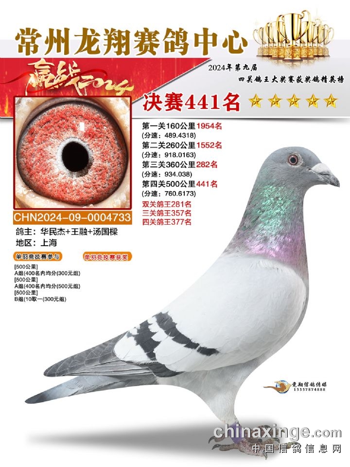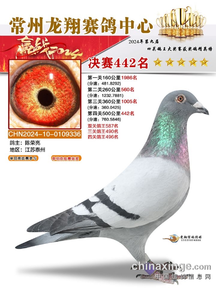 常州龙翔:2024年决赛获奖鸽靓照441-445名