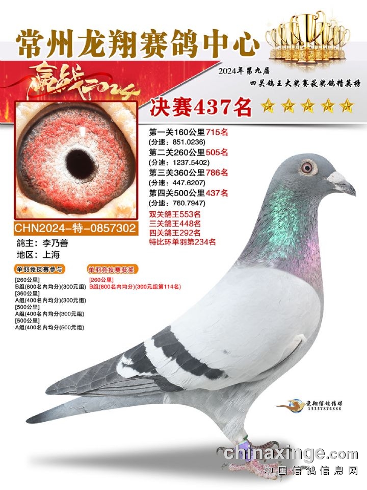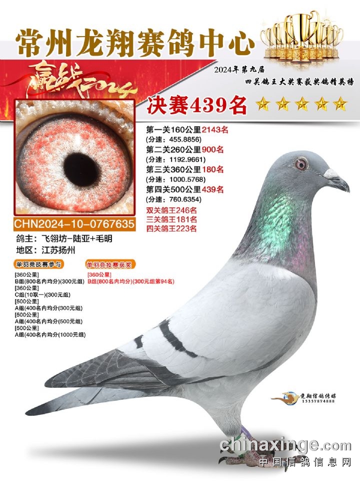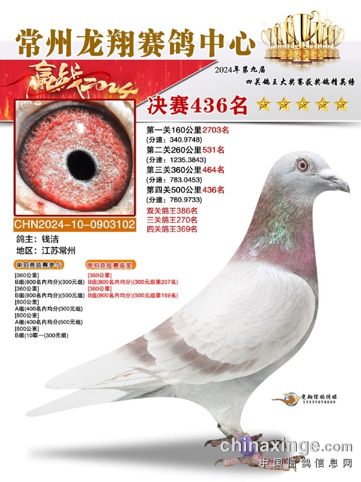 常州龙翔:2024年决赛获奖鸽靓照436-440名