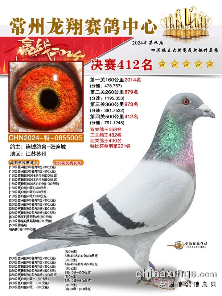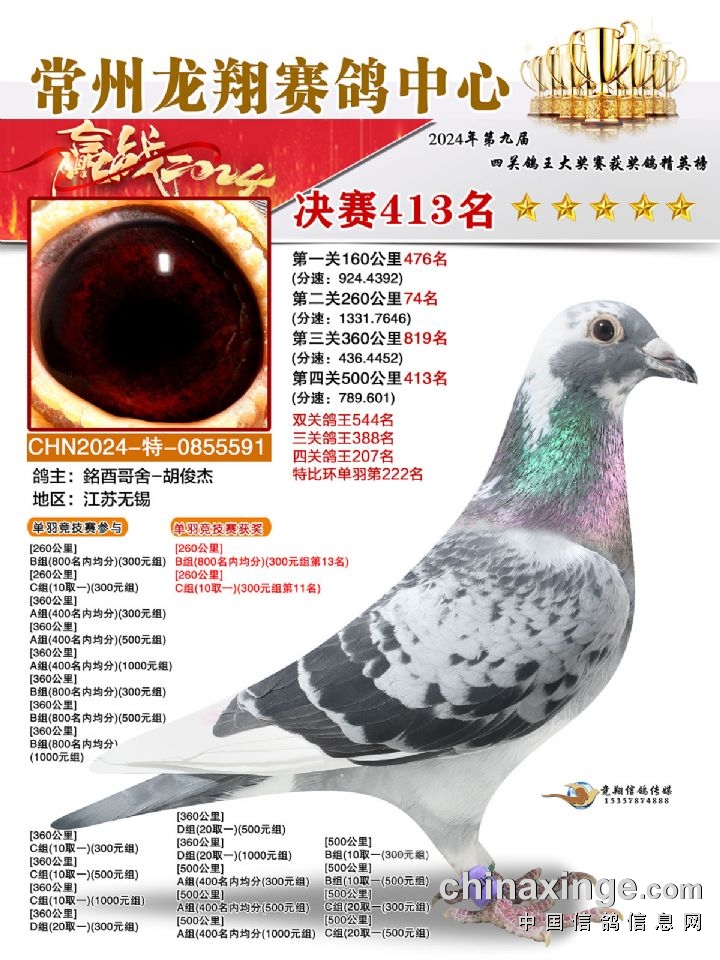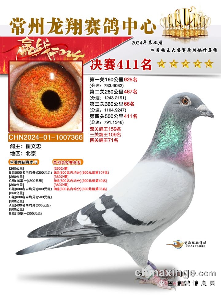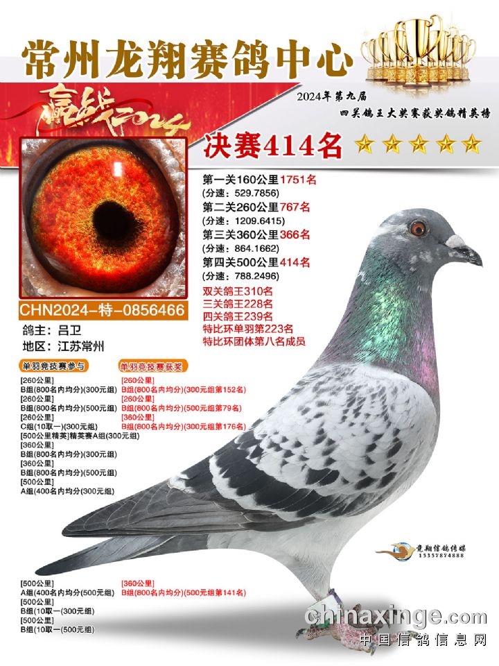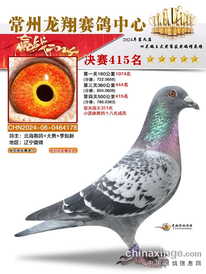 常州龙翔:2024年决赛获奖鸽靓照411-415名