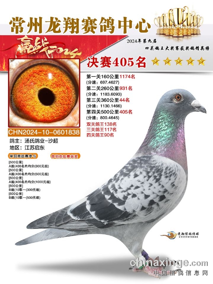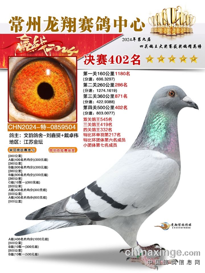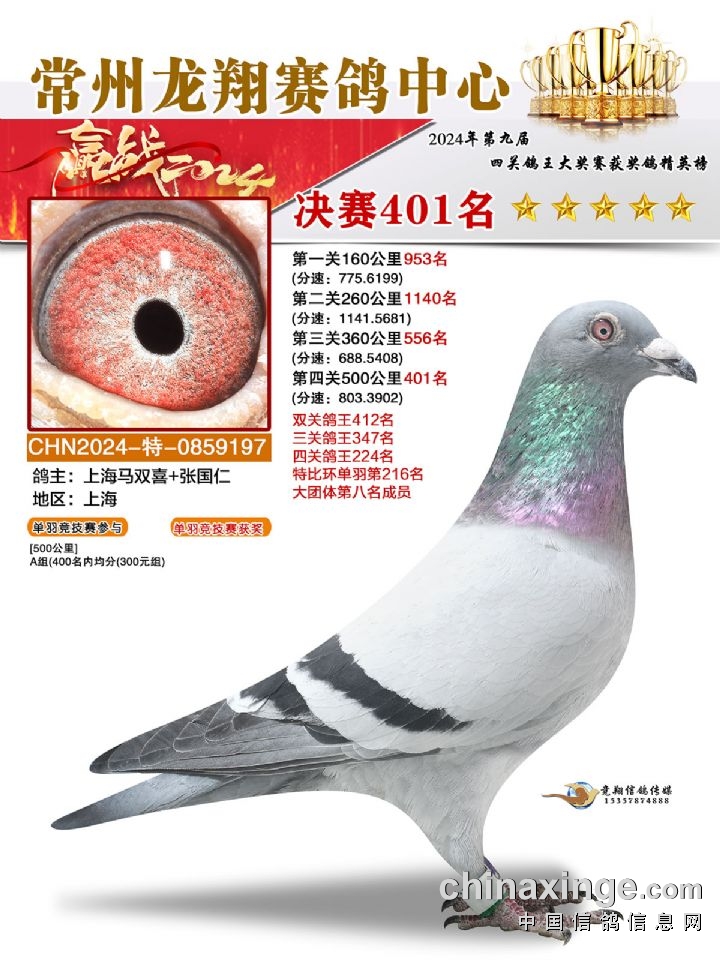 常州龙翔:2024年决赛获奖鸽靓照401-405名