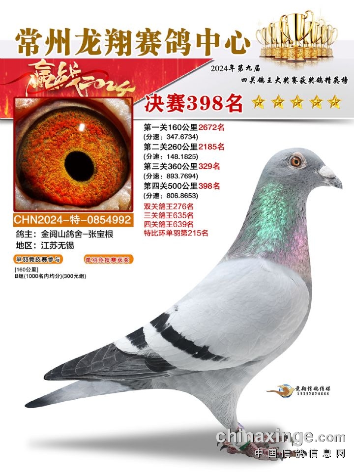 常州龙翔:2024年决赛获奖鸽靓照396-400名