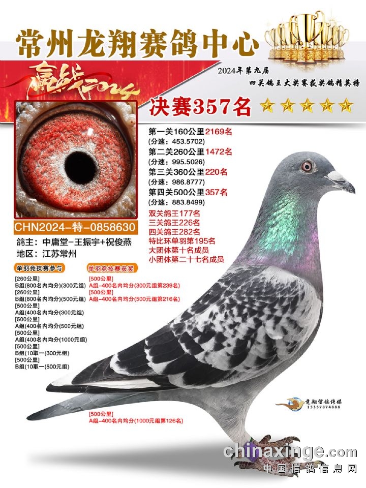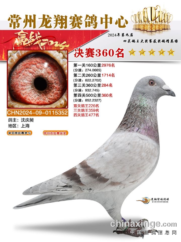 常州龙翔:2024年决赛获奖鸽靓照356-360名