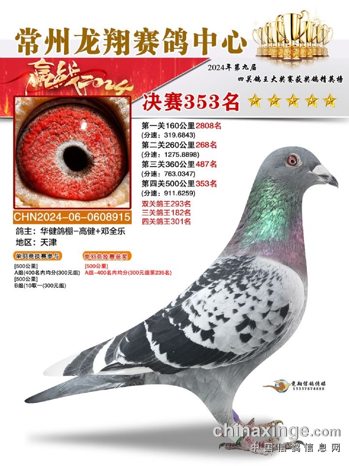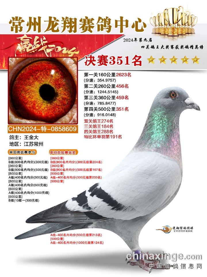 常州龙翔:2024年决赛获奖鸽靓照351-355名