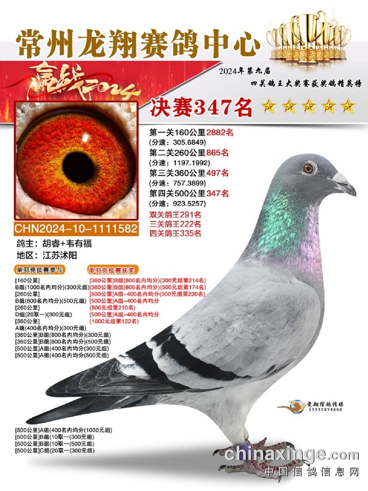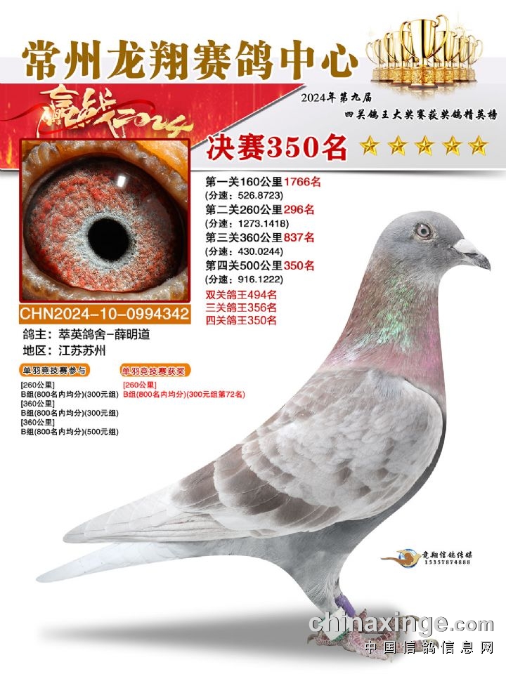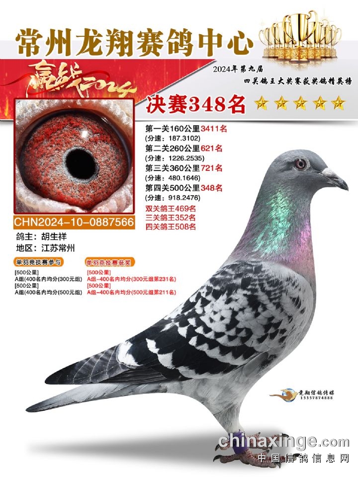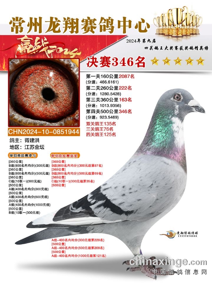 常州龙翔:2024年决赛获奖鸽靓照346-350名