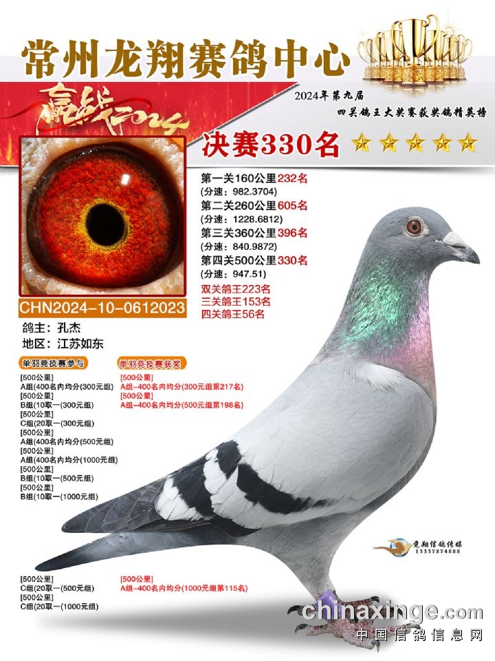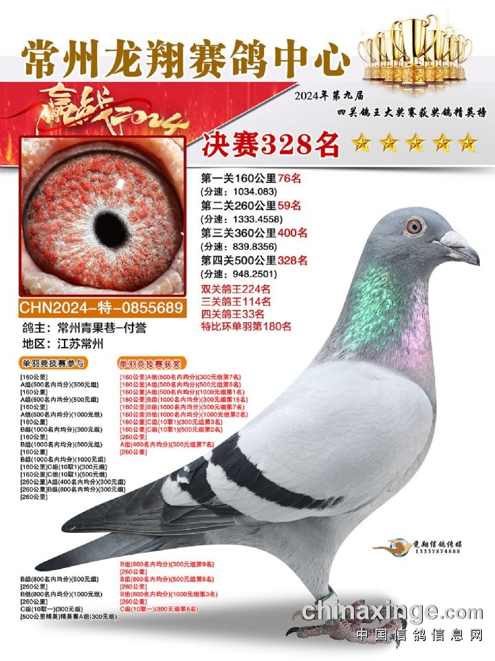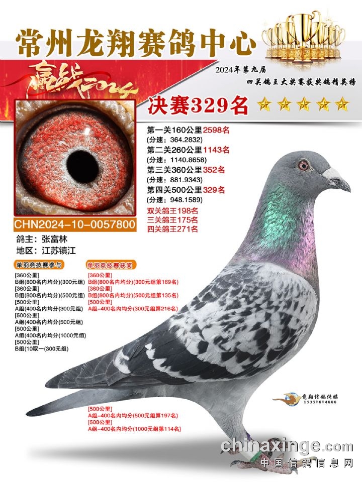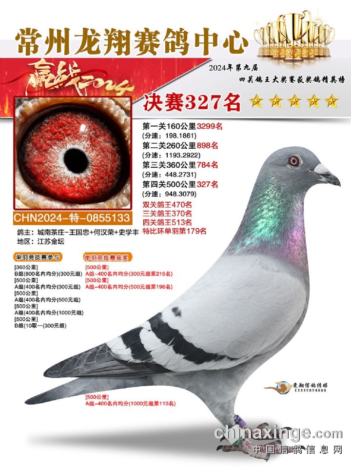 常州龙翔:2024年决赛获奖鸽靓照326-330名