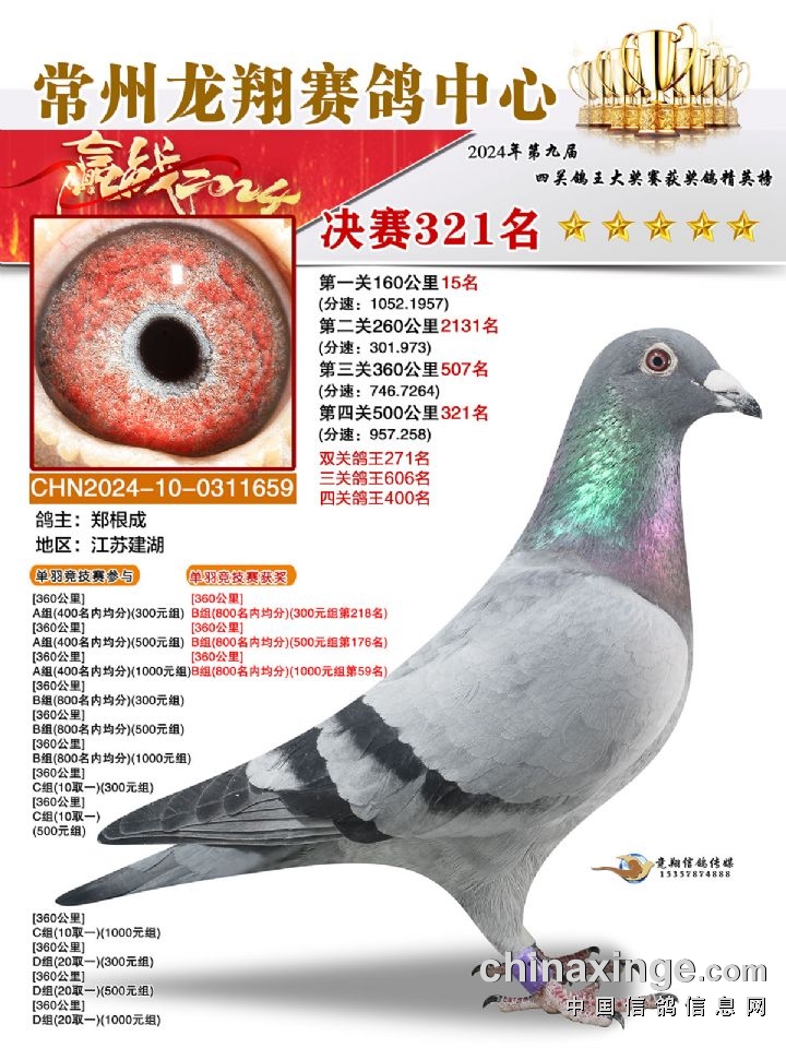 常州龙翔:2024年决赛获奖鸽靓照321-325名