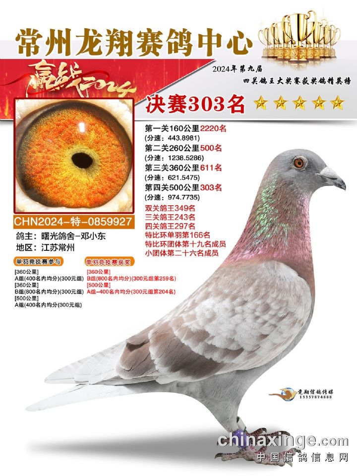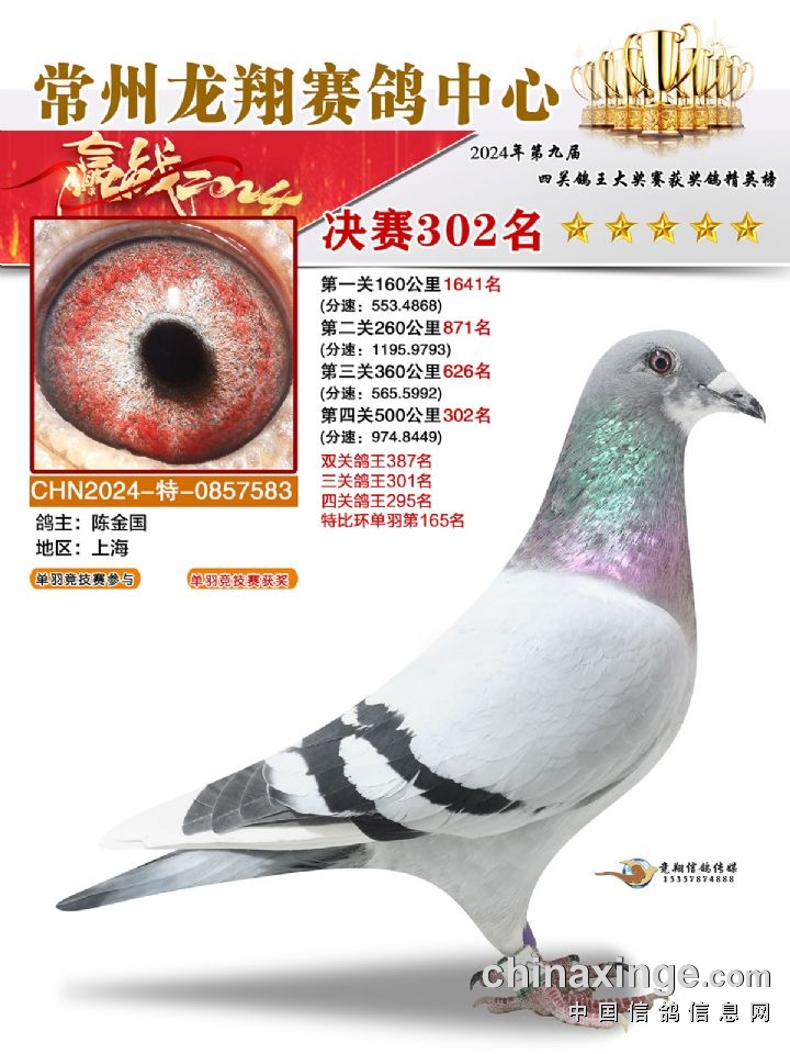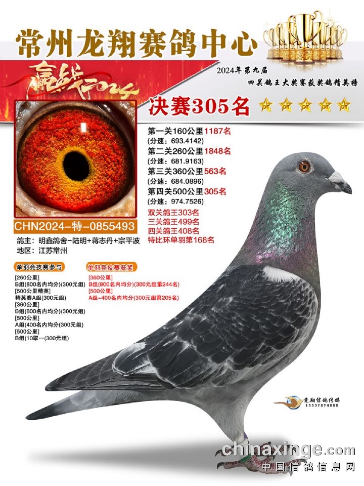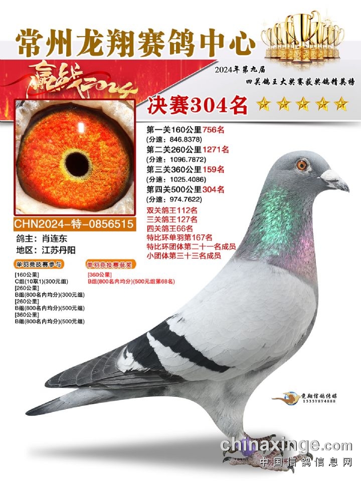 常州龙翔:2024年决赛获奖鸽靓照301-305名