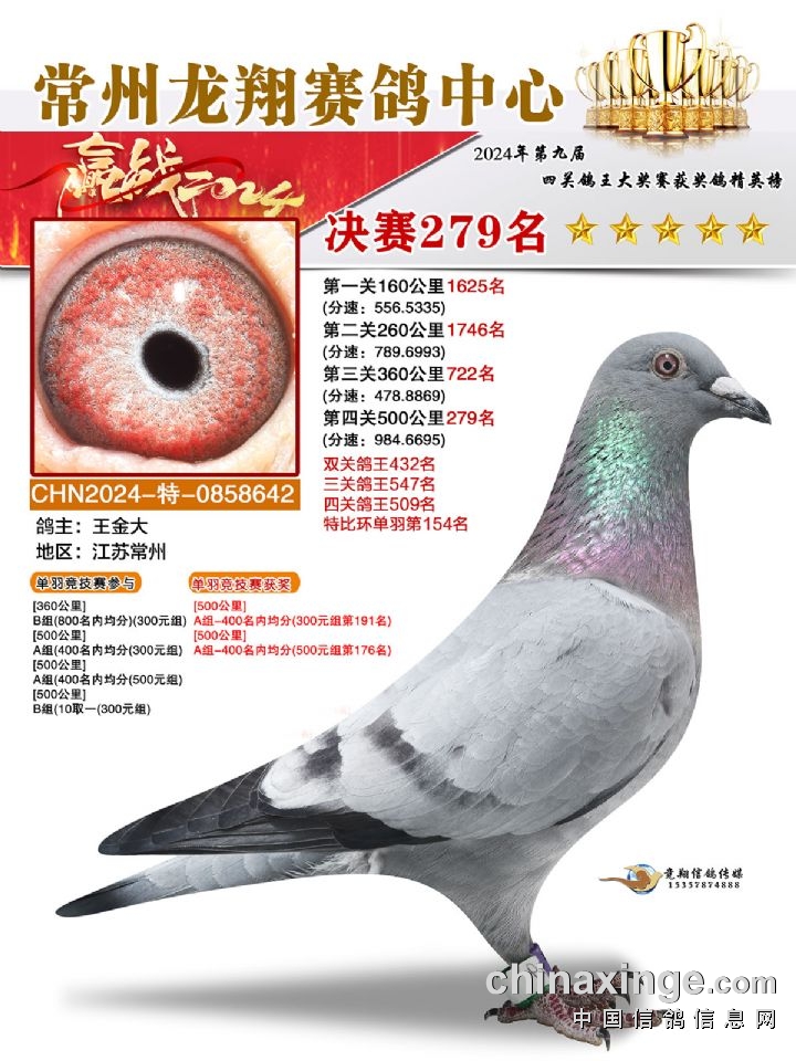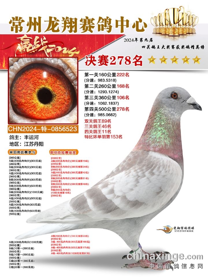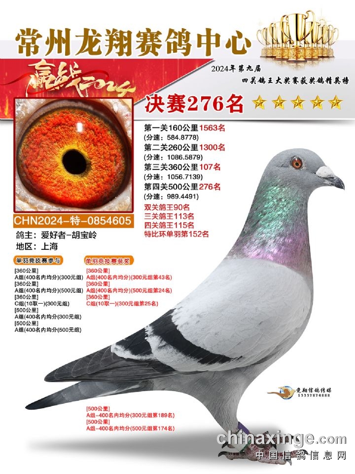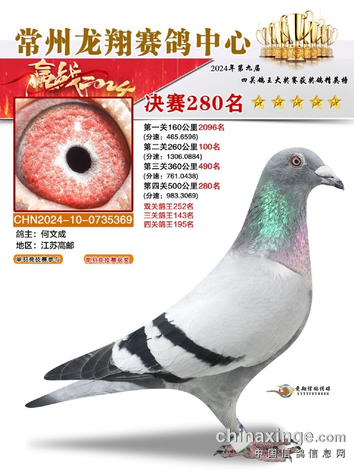 常州龙翔:2024年决赛获奖鸽靓照276-280名