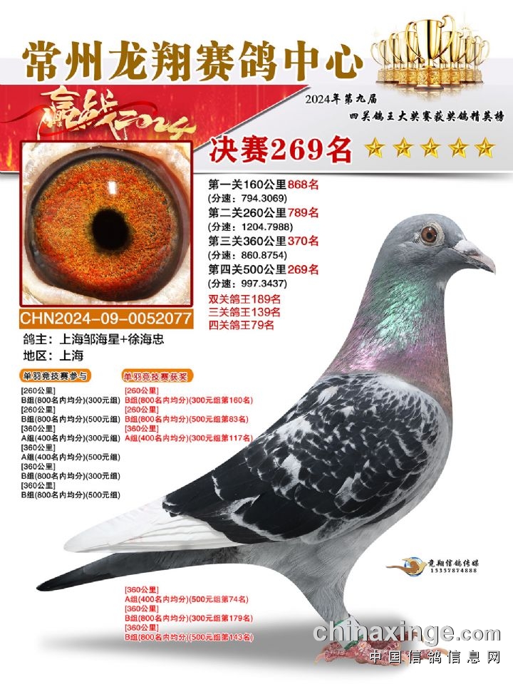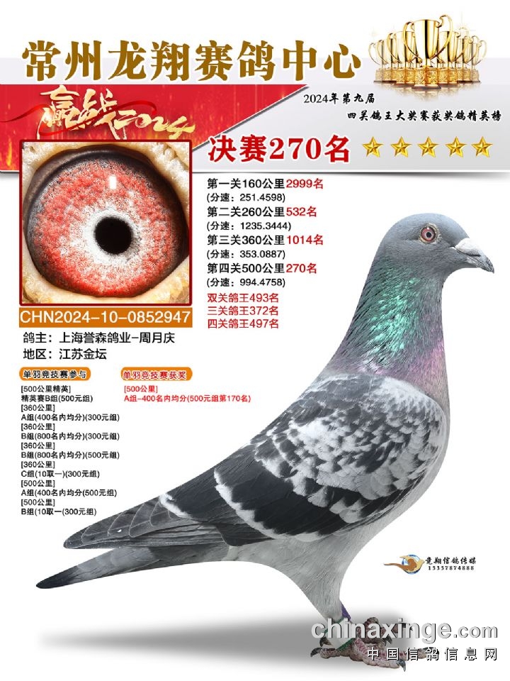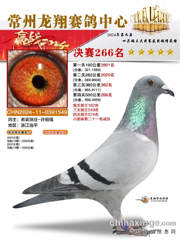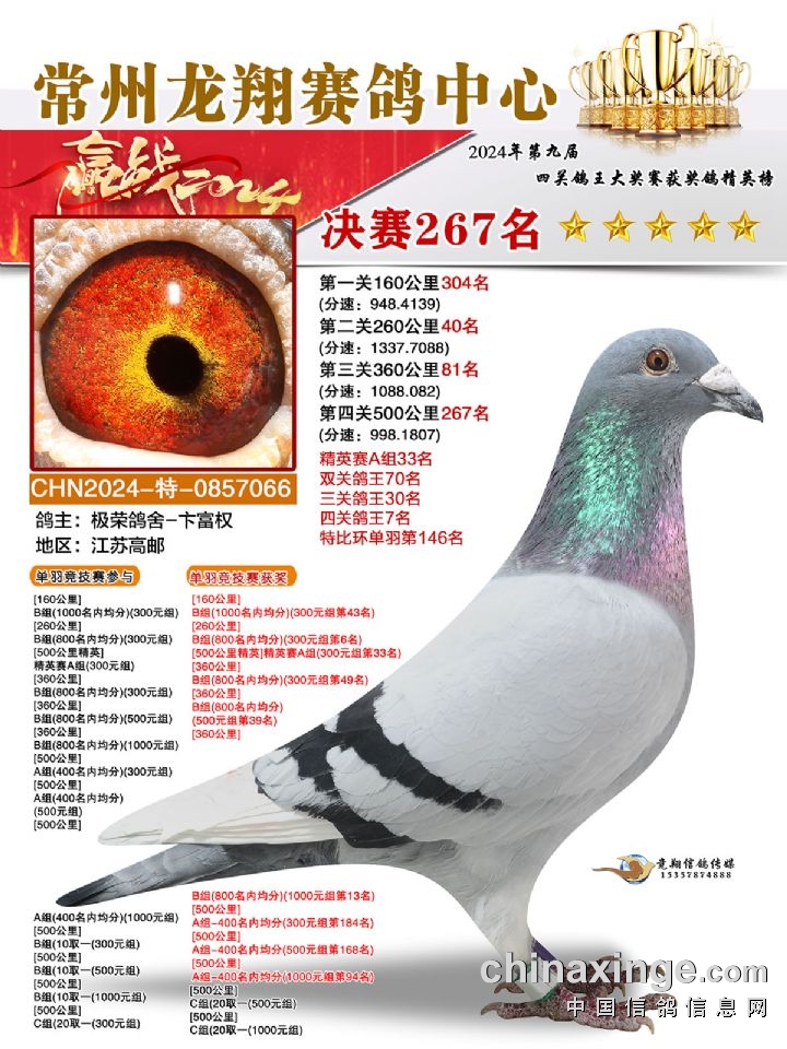 常州龙翔:2024年决赛获奖鸽靓照266-270名