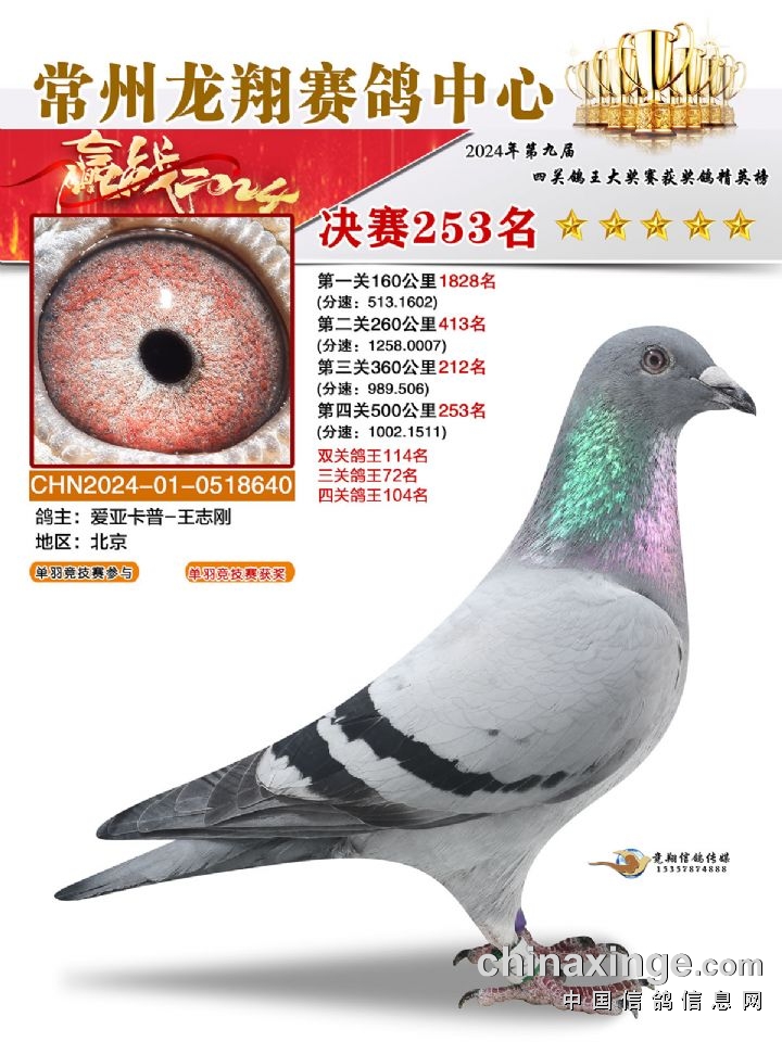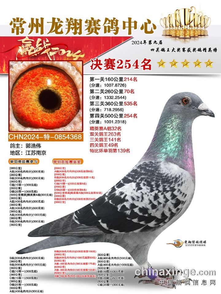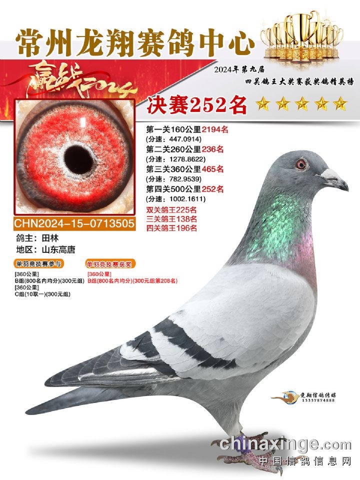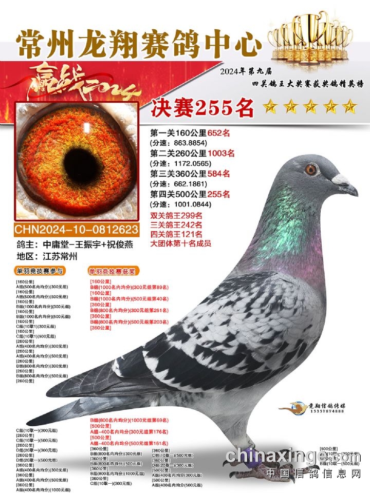 常州龙翔:2024年决赛获奖鸽靓照251-255名