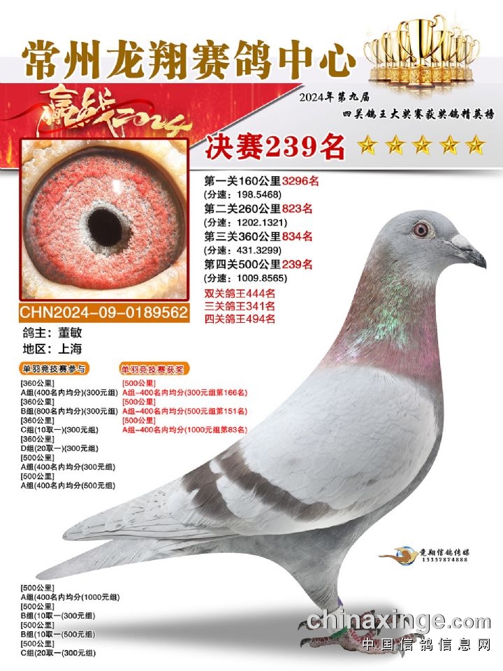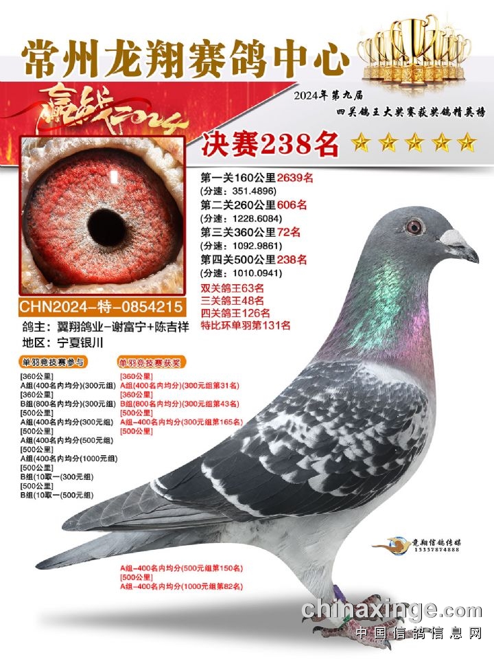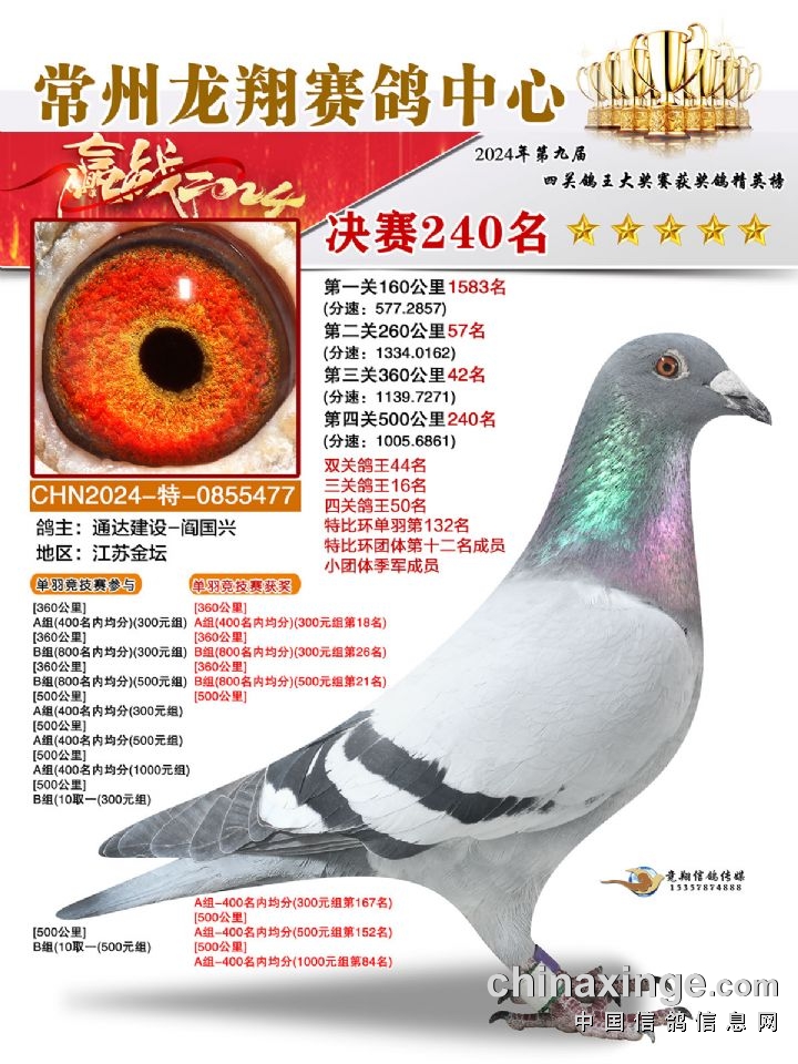 常州龙翔:2024年决赛获奖鸽靓照236-240名