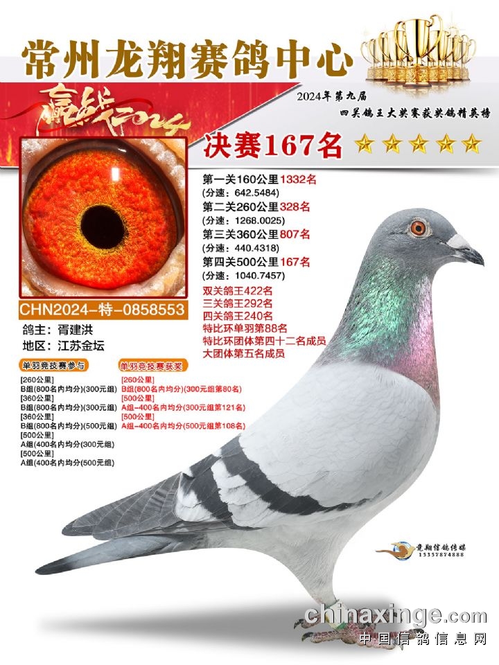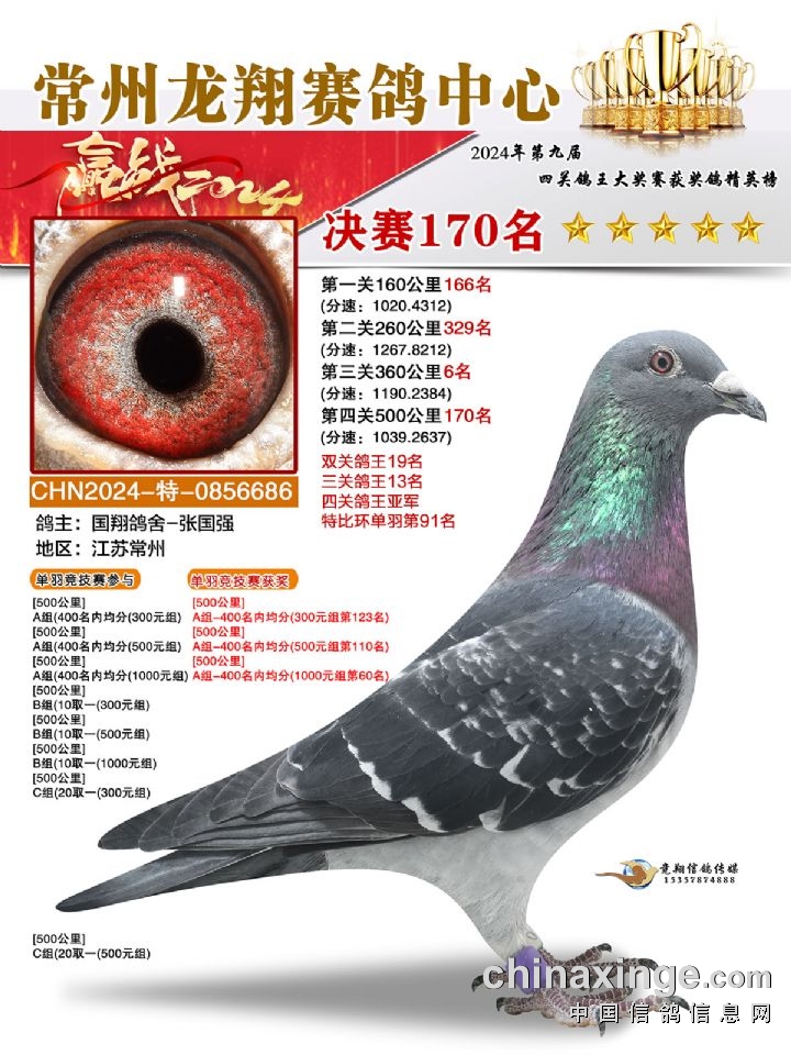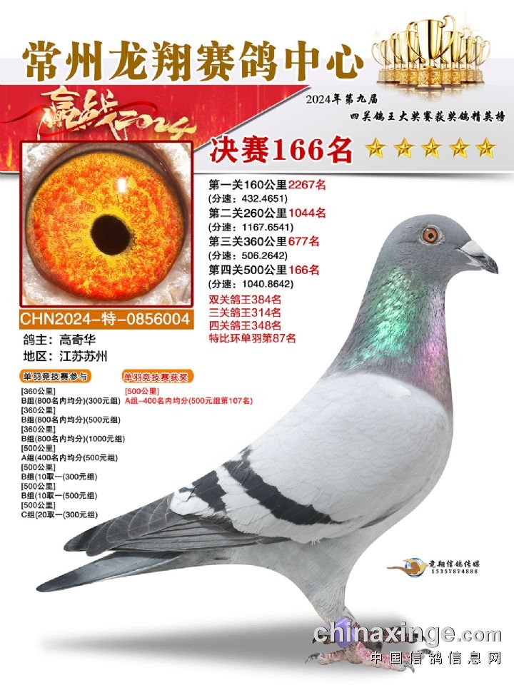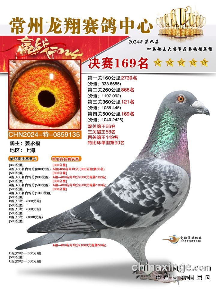 常州龙翔:2024年决赛获奖鸽靓照166-170名