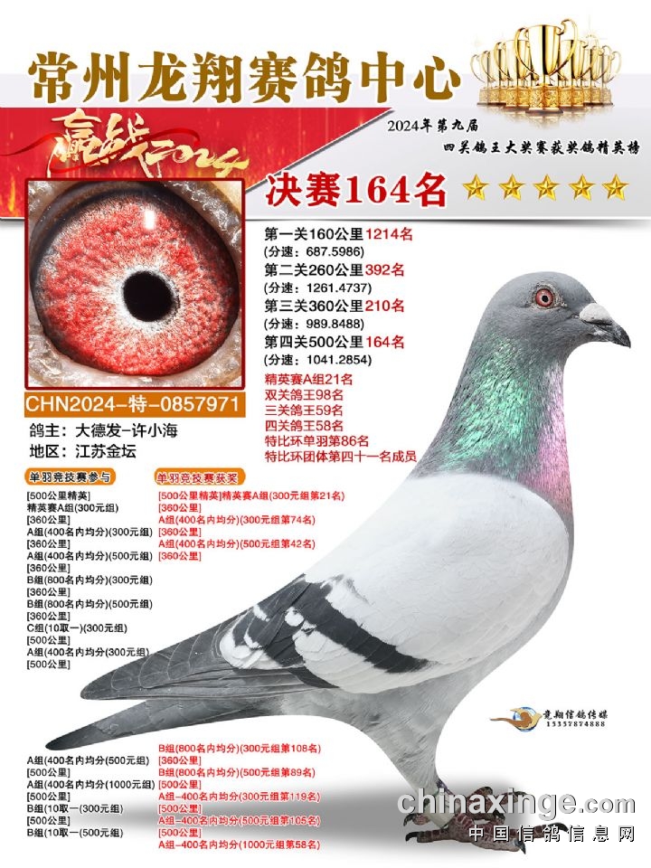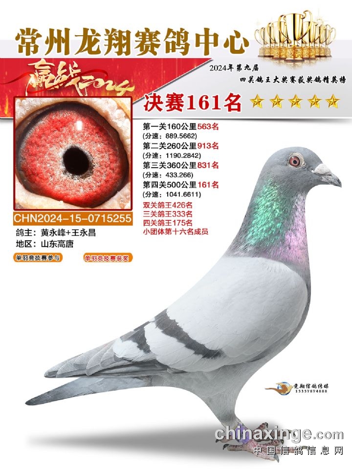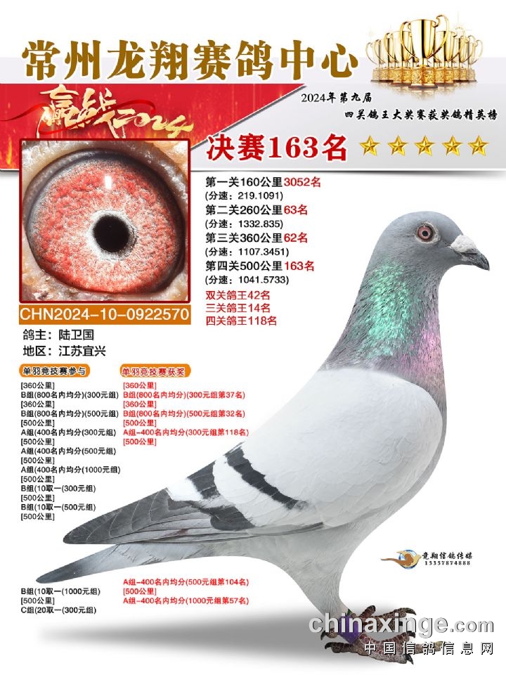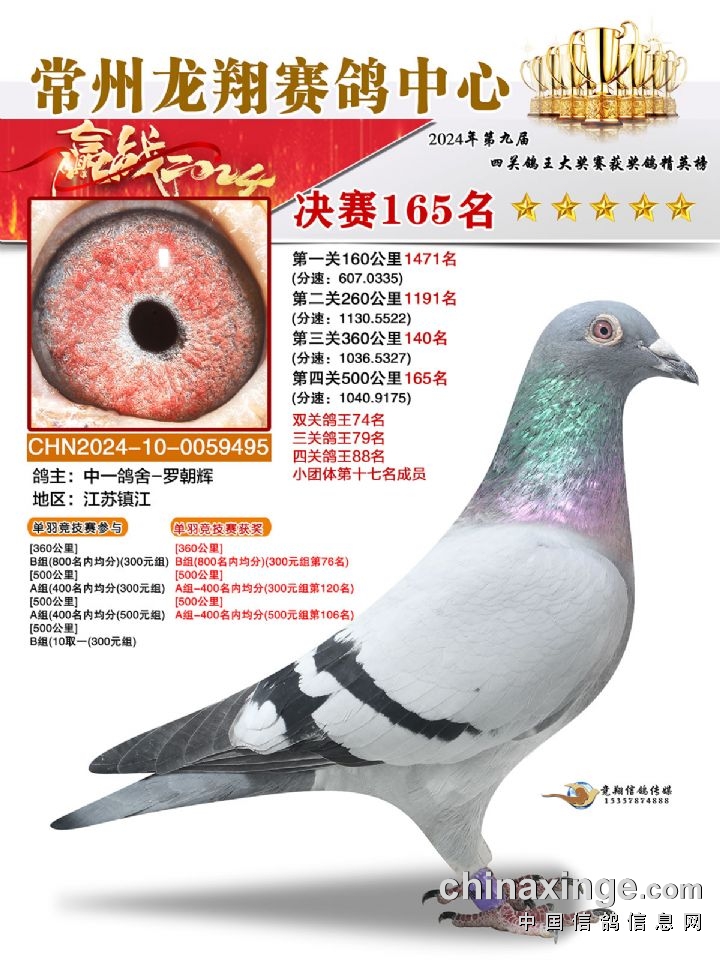 常州龙翔:2024年决赛获奖鸽靓照161-165名