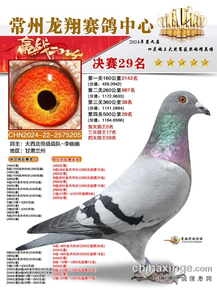 常州龙翔:2024年决赛获奖鸽靓照26-30名