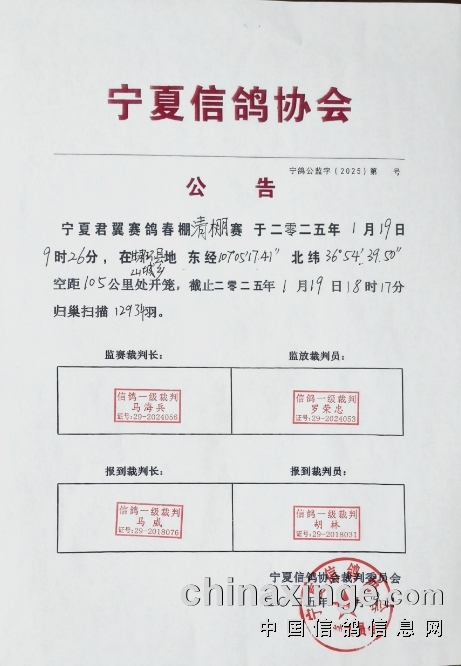 宁夏信鸽协会公告