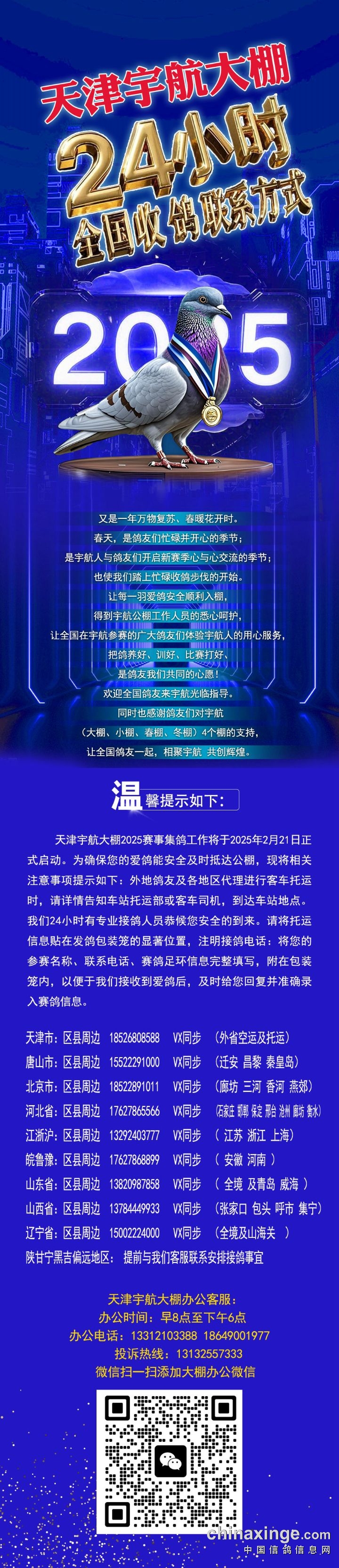 天津宇航大棚24小时全国接鸽服务热线
