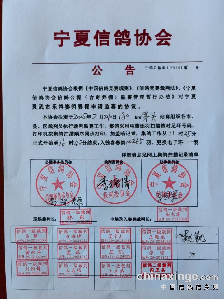 宁夏乐祥赛鸽公棚预交参赛费核对通知