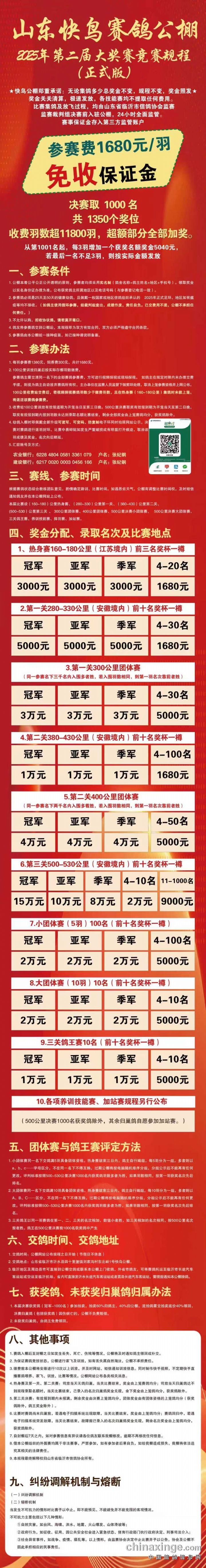 山东快鸟赛鸽公棚 第二届秋季赛事规程