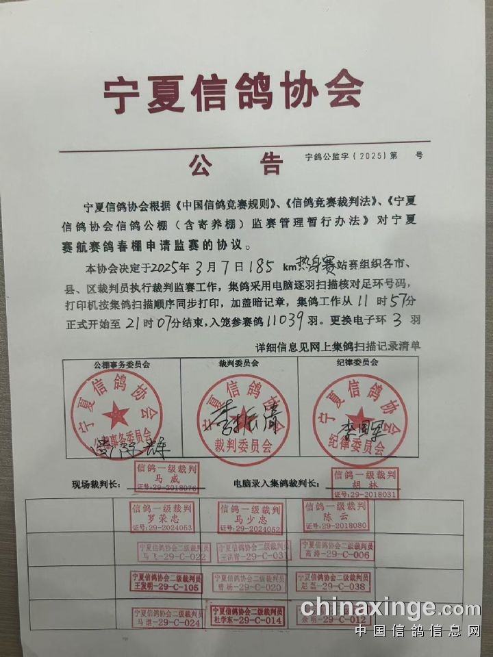 宁夏赛航赛鸽公棚预交参赛费核对通知