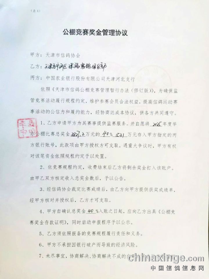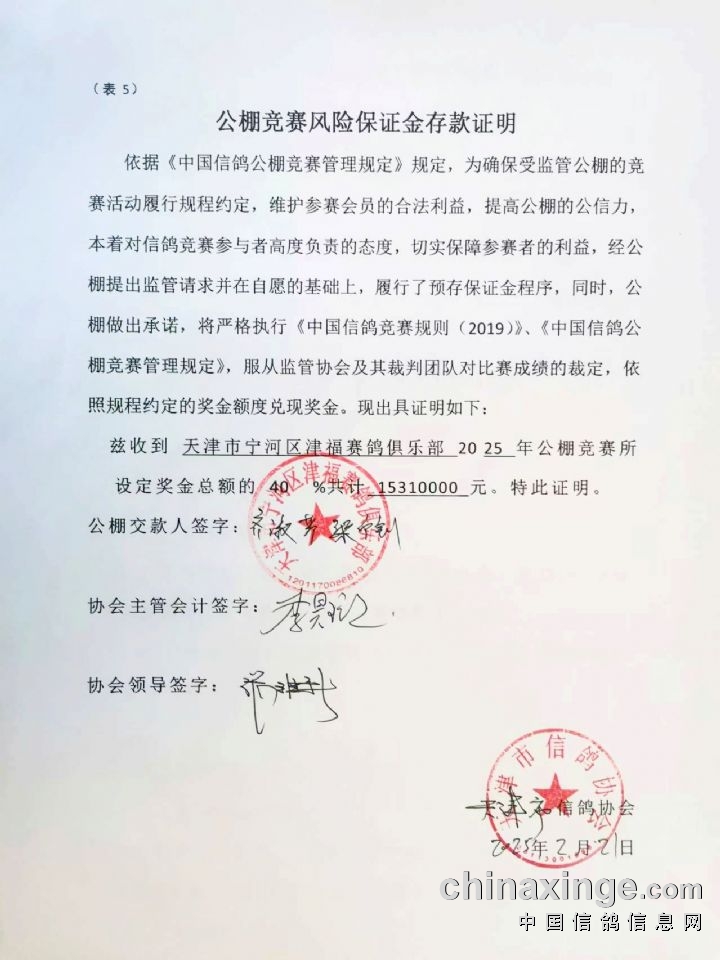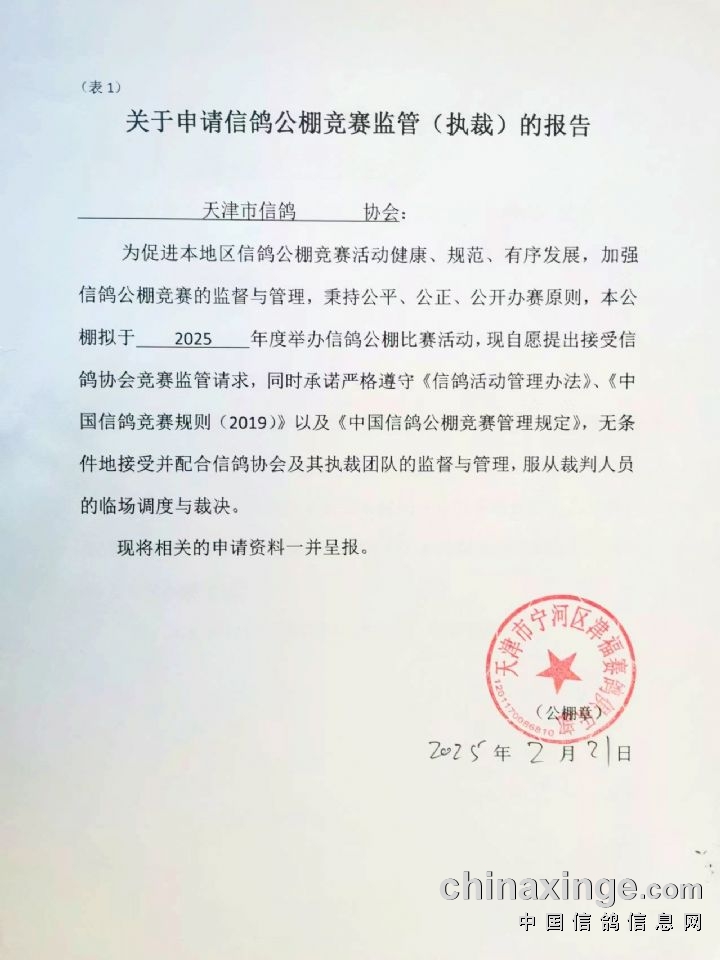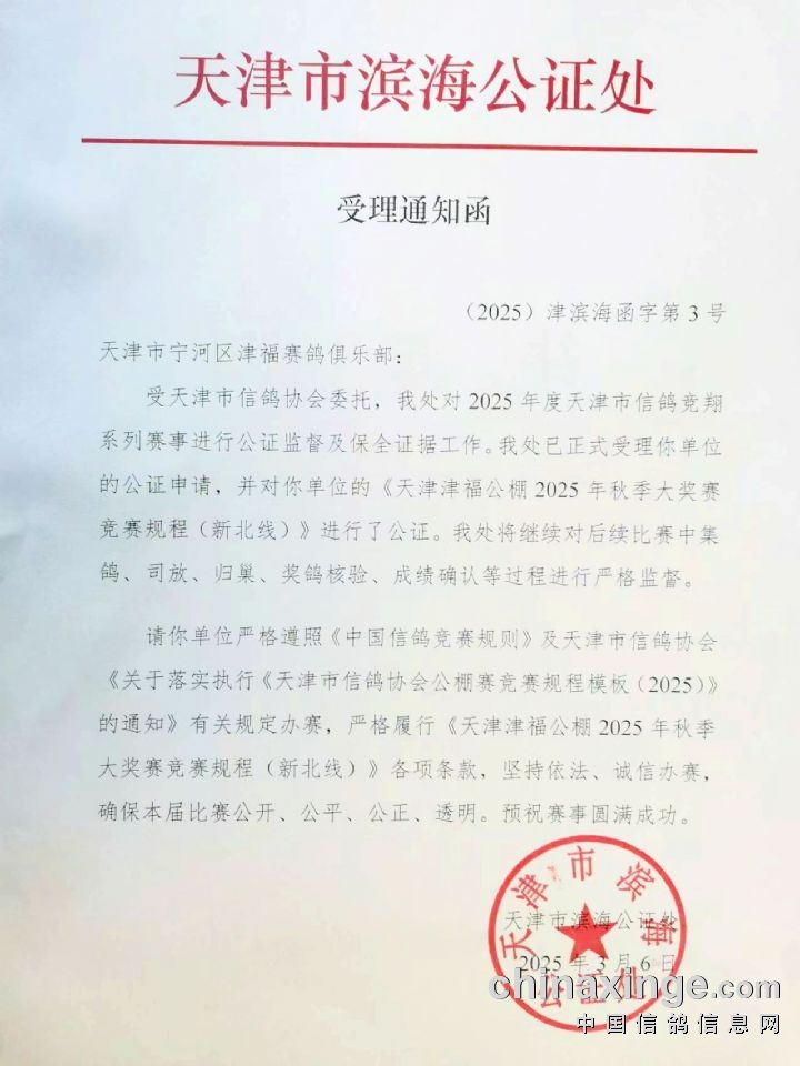 津福公棚现已成功获批天津市信鸽协会及司法公正的正式版本章程,相关手续及资料已上传,欢迎查阅。