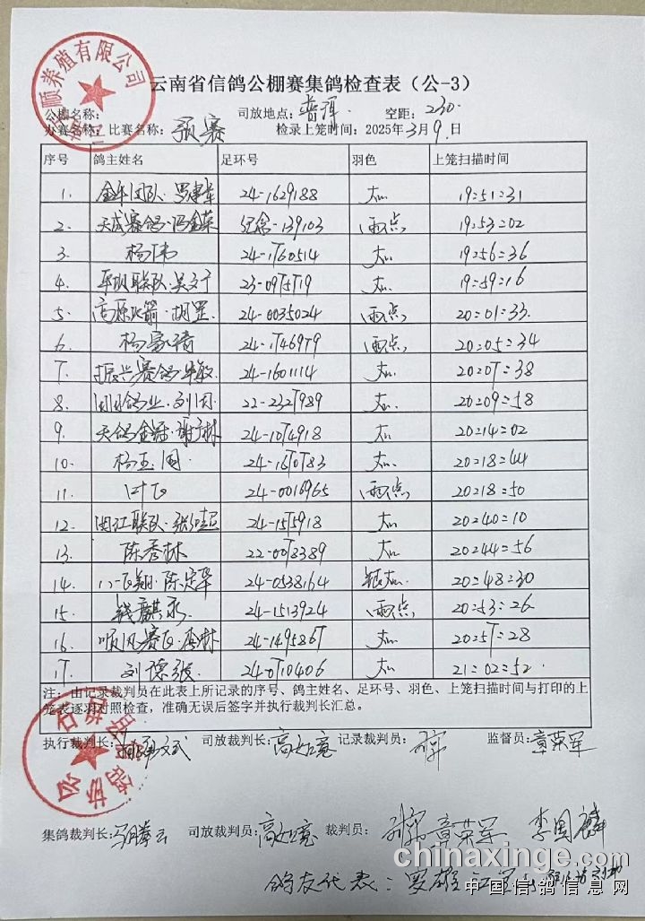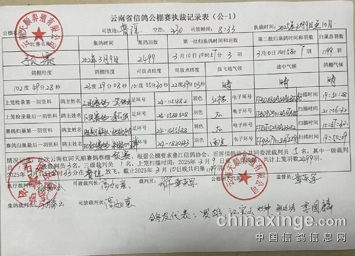 云南红河天顺赛鸽中心(春棚)第二次次家飞扫描