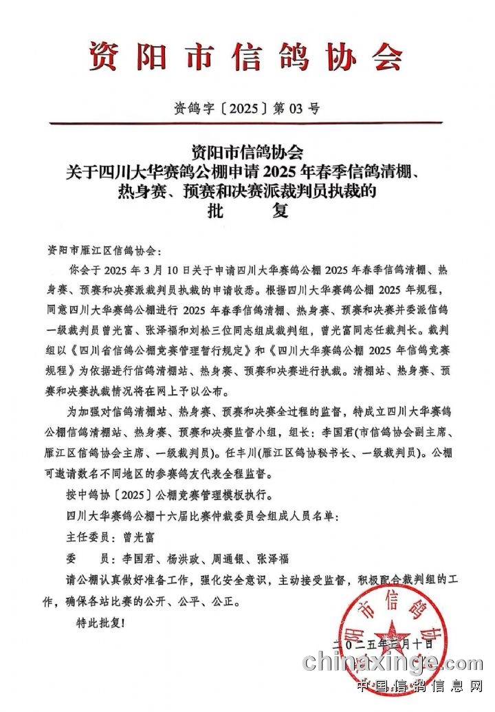 资阳市信鸽协会执裁公告