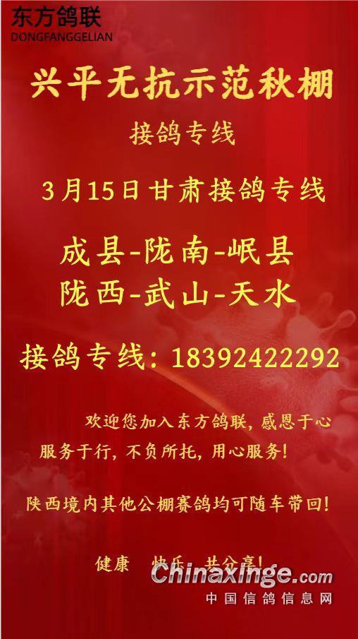 东方鸽联兴平无抗示范秋棚:3月15日接鸽路线