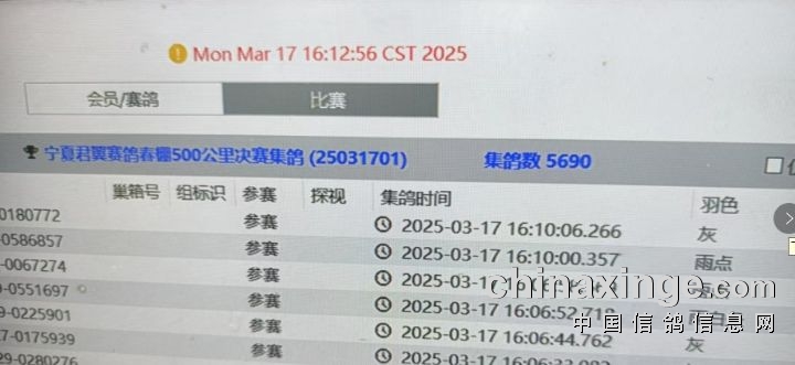 宁夏君翼赛鸽公棚(春棚)12月21日10公里训放成绩直播