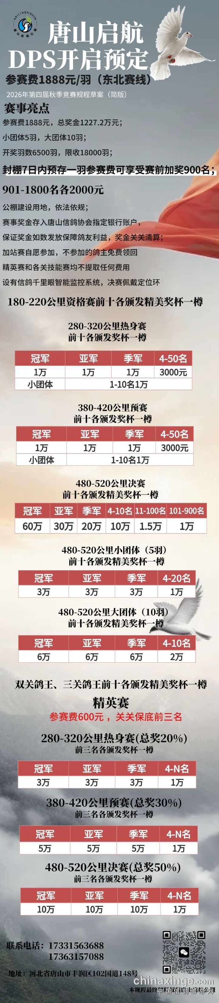 2026年唐山启航赛鸽公棚入棚清单(更新中)