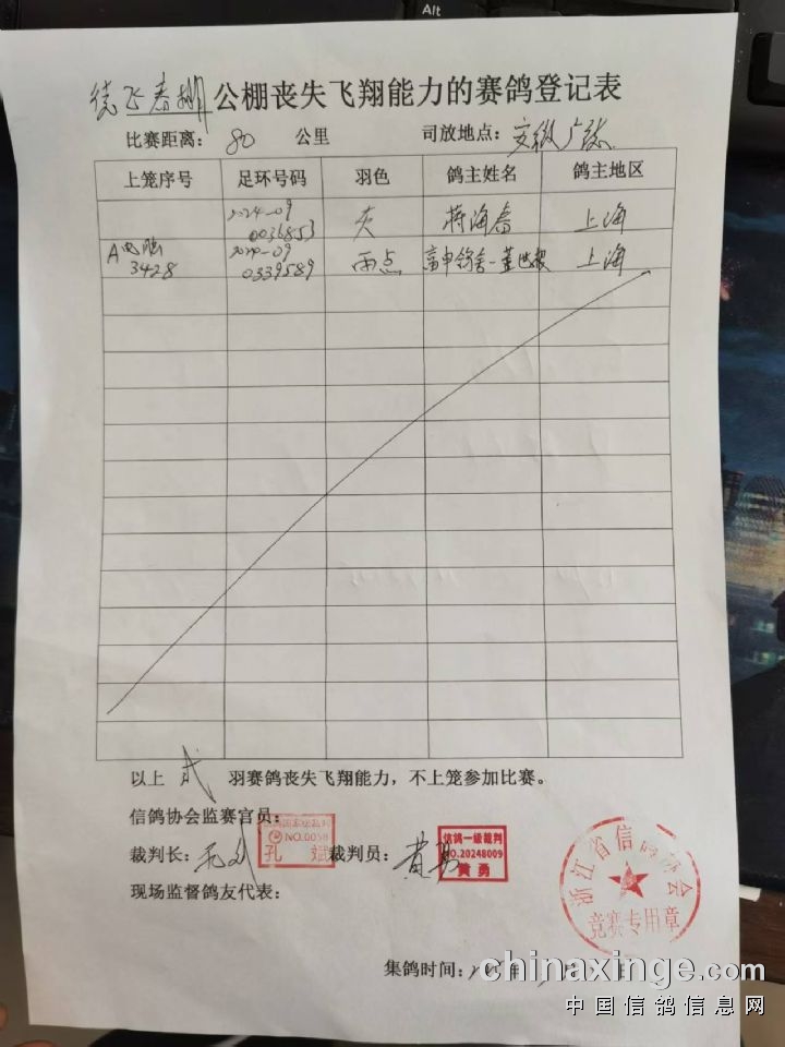 浙江德飞赛鸽春棚加站赛拍卖鸽信息参考表