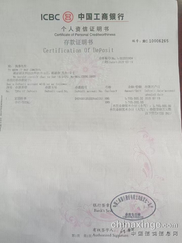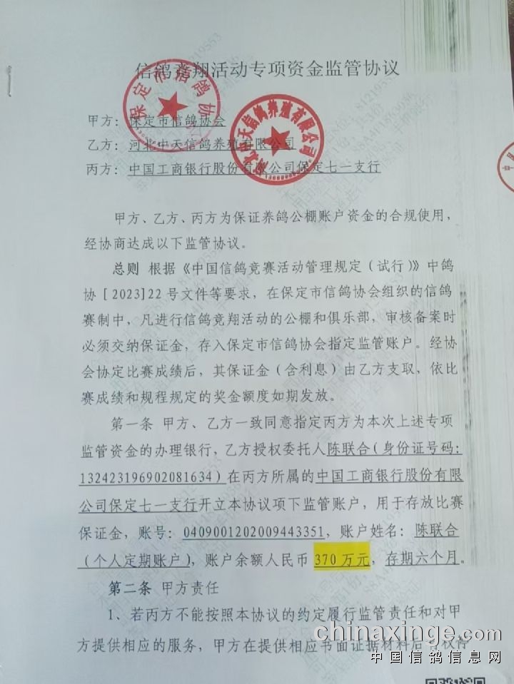 中天爱亚卡普公棚2025年竞赛风险保证金存款证明