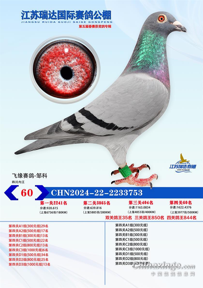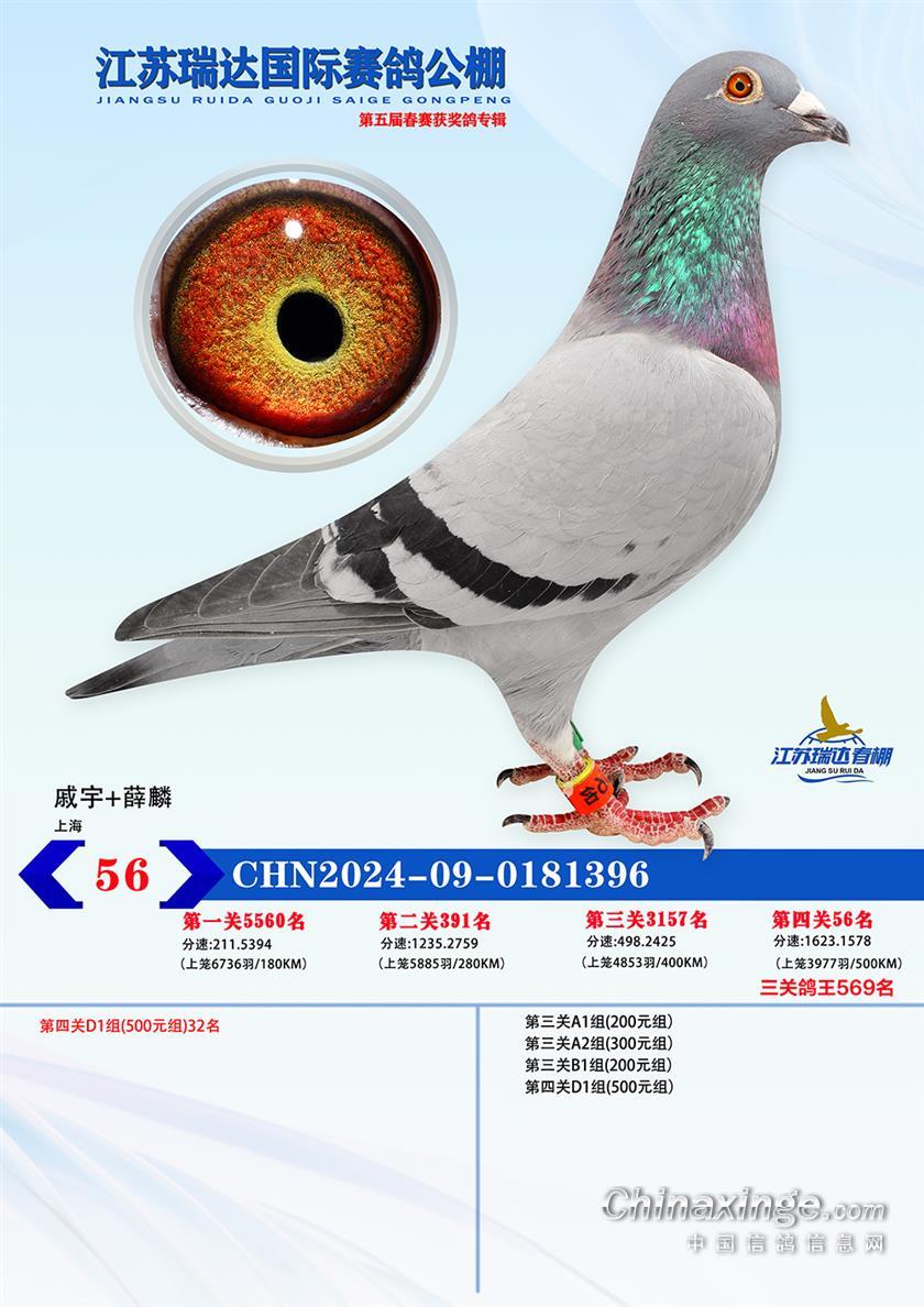 江苏瑞达(春):决赛获奖鸽雌雄鉴定结果(仅供参考)