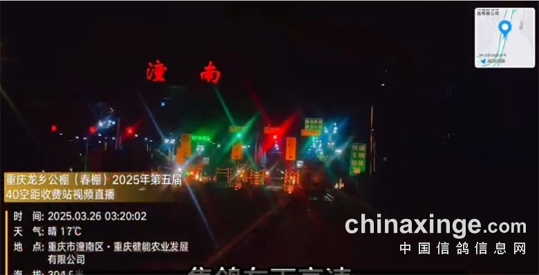 ∆2025年3月26日凌晨3:20分4辆集鸽车从潼南收费站下高速前往司放地。