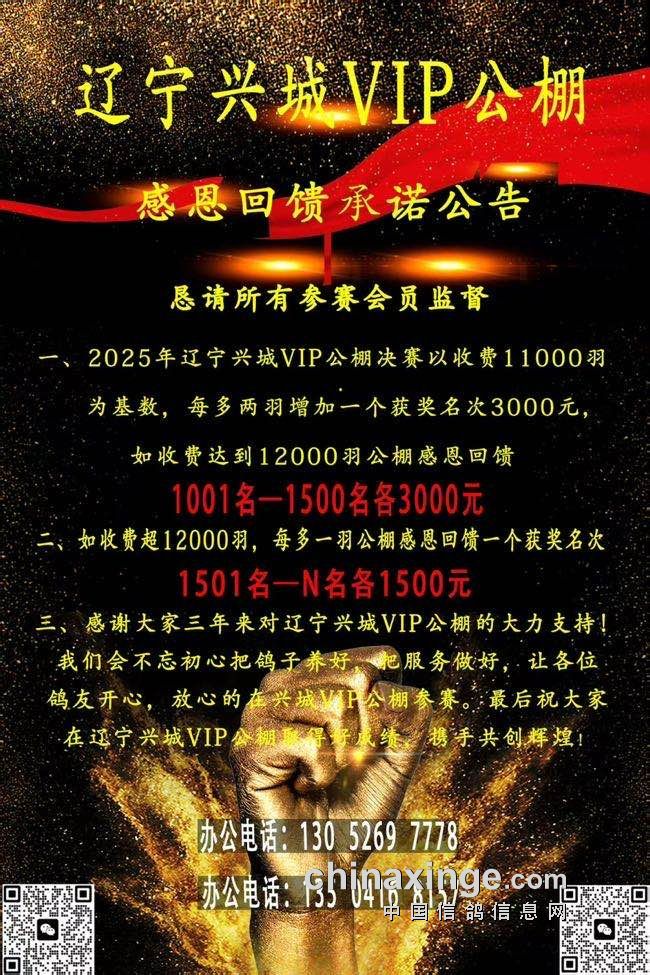 辽宁兴城VIP赛鸽公棚2025年第四届感恩回馈