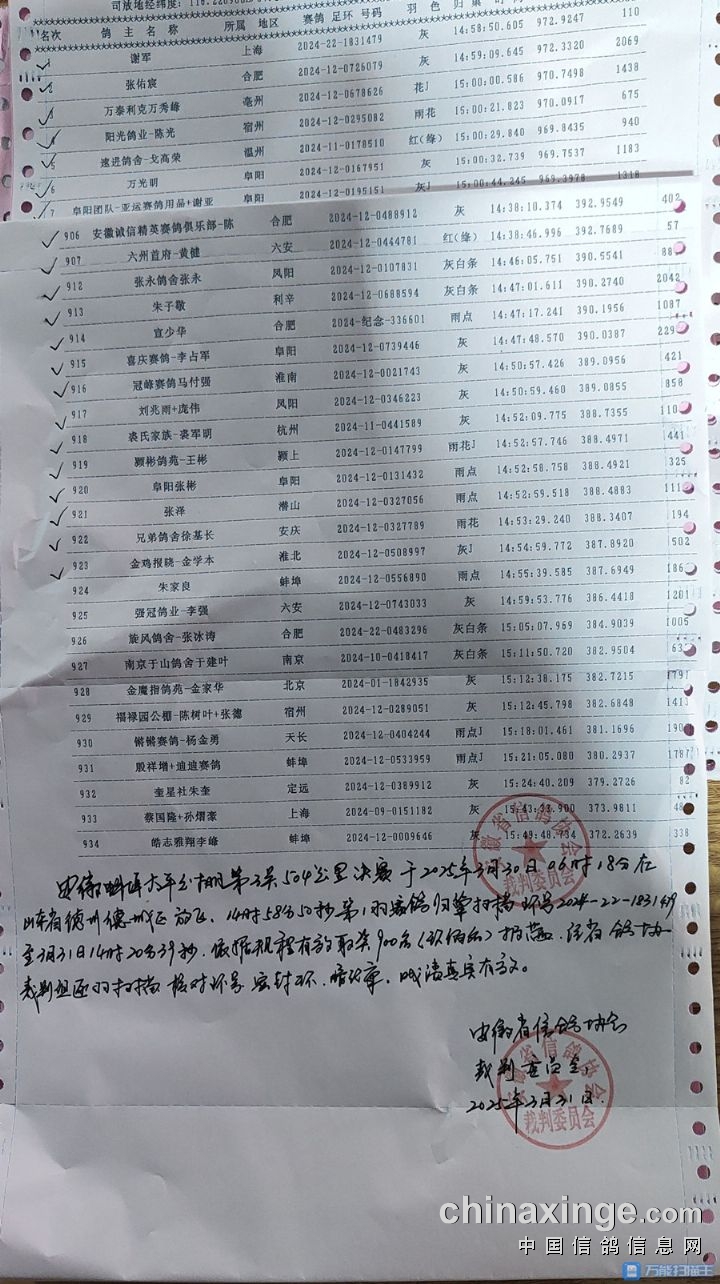 安徽太平公棚2025年第三关504公里决赛获奖鸽验鸽图片
