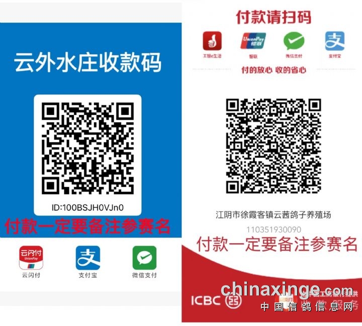 4、鸽友可通过银行汇款方式及微信转账交纳参赛费,交款后务必将您的参赛名微信拍照传至本公棚(非常重要)!