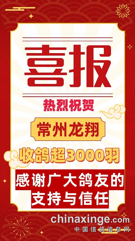 喜报:常州龙翔截止2025年4月5日收鸽突破3000羽