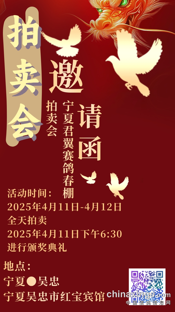 宁夏君翼赛鸽公棚(春棚)2025年第三届拍卖会邀请函