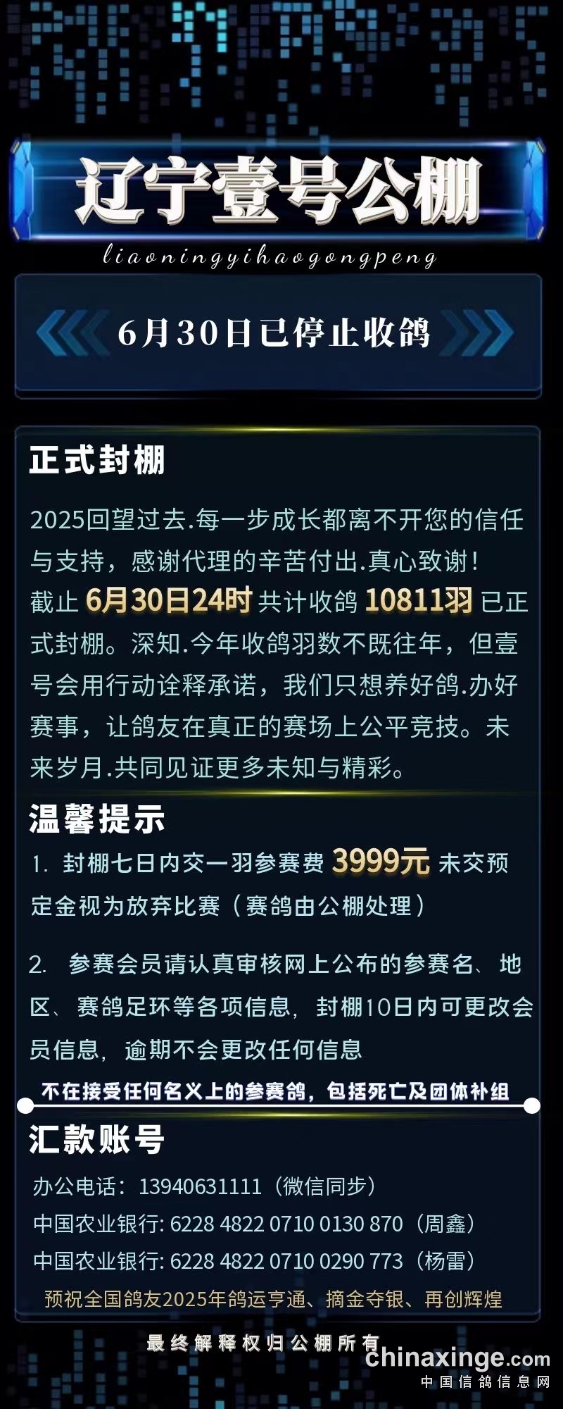 农业银行:6228 4822 0710 0130 870(周鑫) 预定金截止封棚七日内(7月7日)