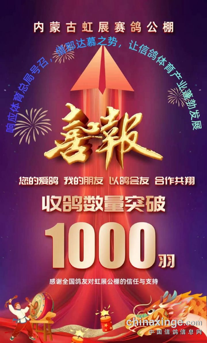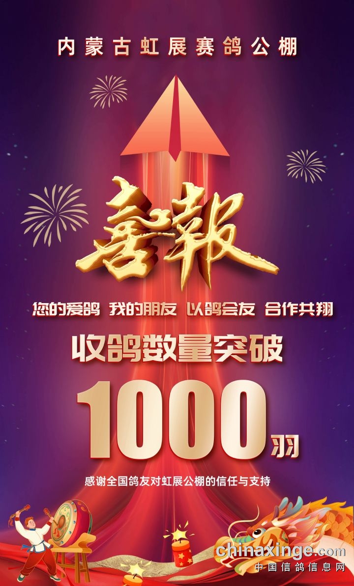 恭祝内蒙古虹展赛鸽公棚收鸽突破1000羽
